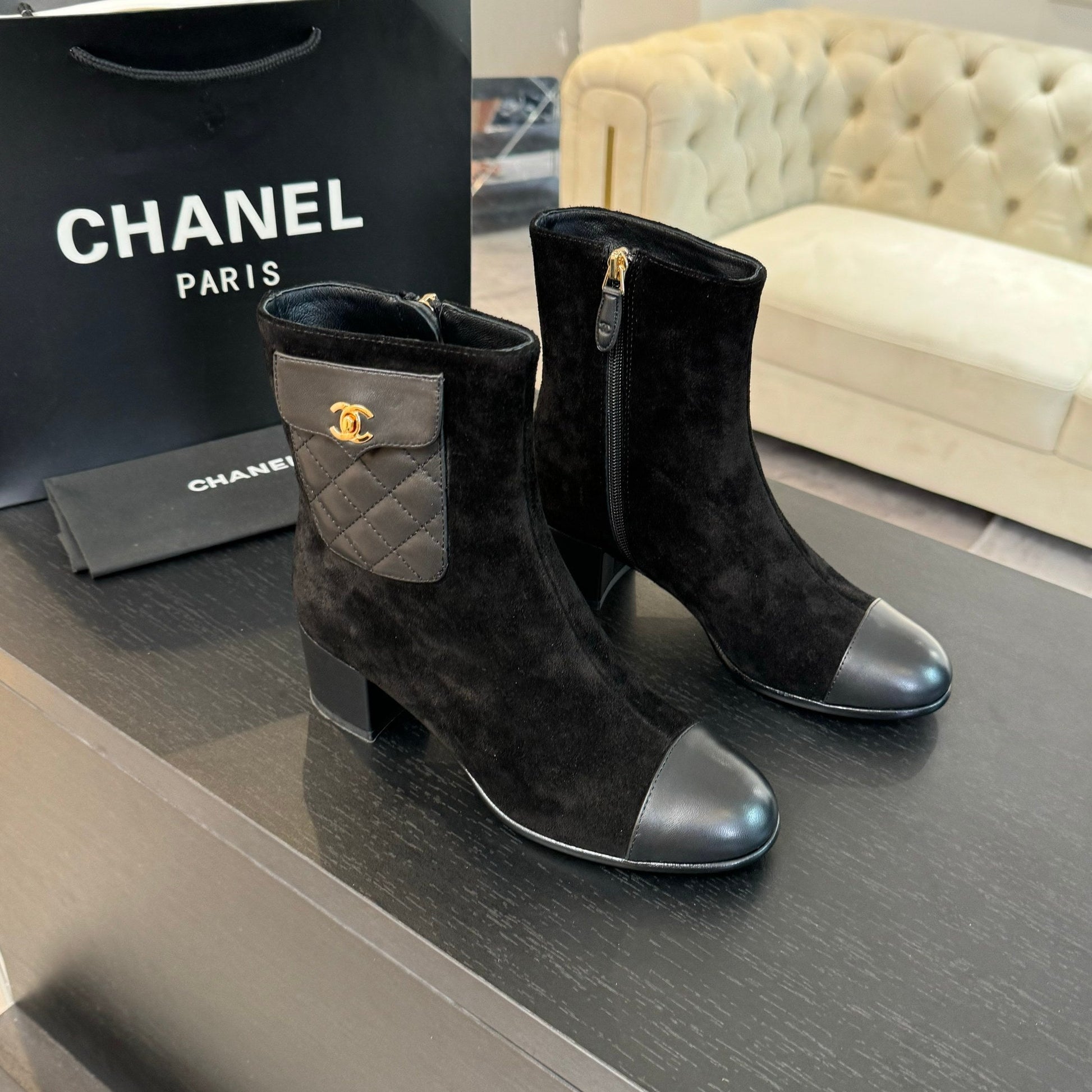 CHANEL Ankle Boots 50mm Black Suede And Lambskin