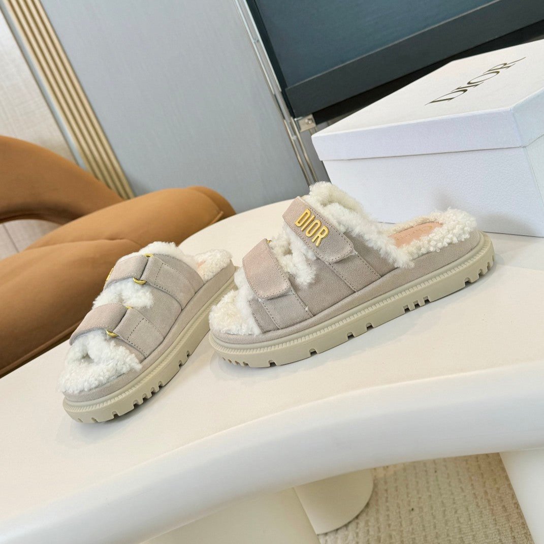 DIOR DIORact Slide Grey Suede And Fleece Lining