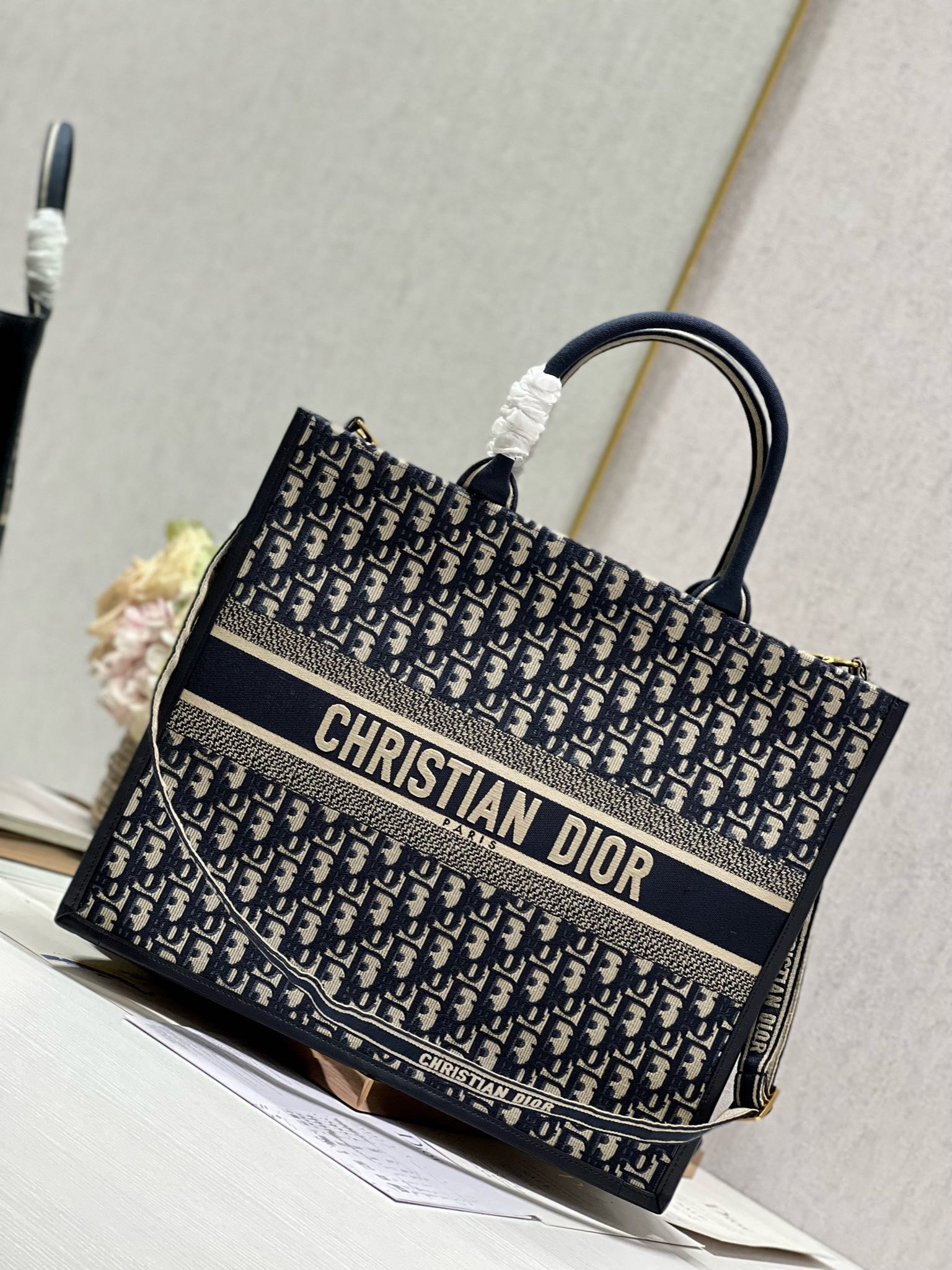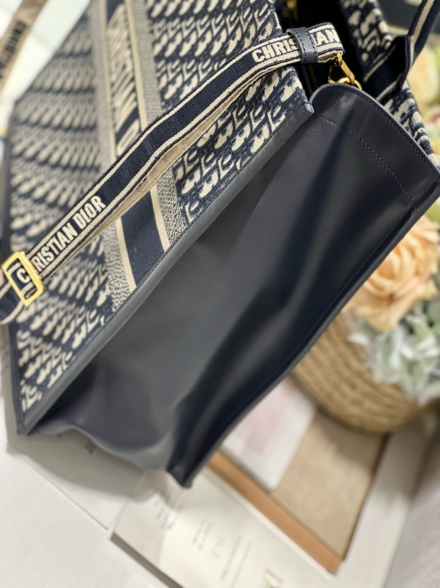 DIOR LARGE BOOK TOTE 42 BLUE OBLIQUE EMBROIDERY