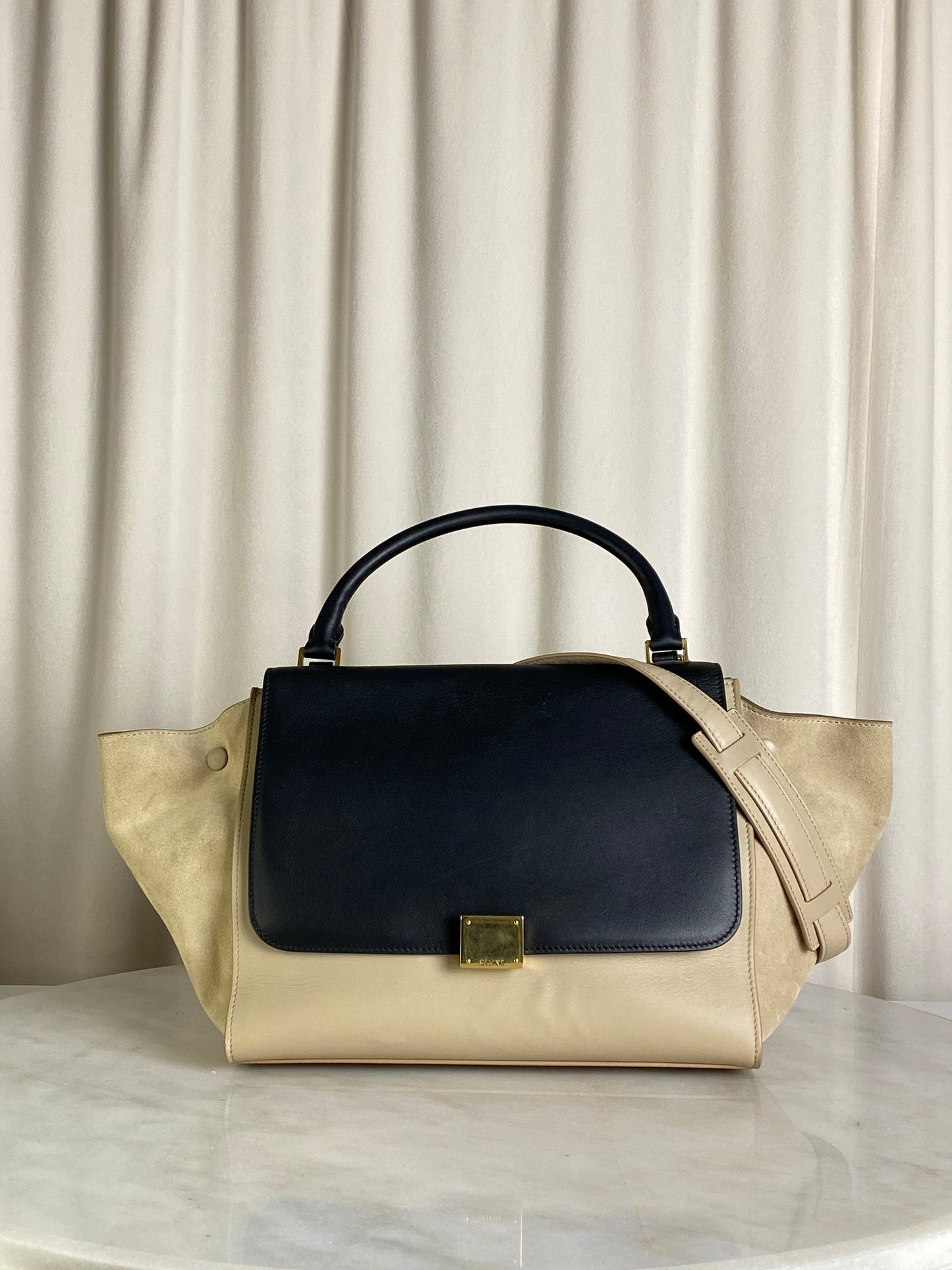 Celine Bicolor Trapeze Tote Bag W/ Strap