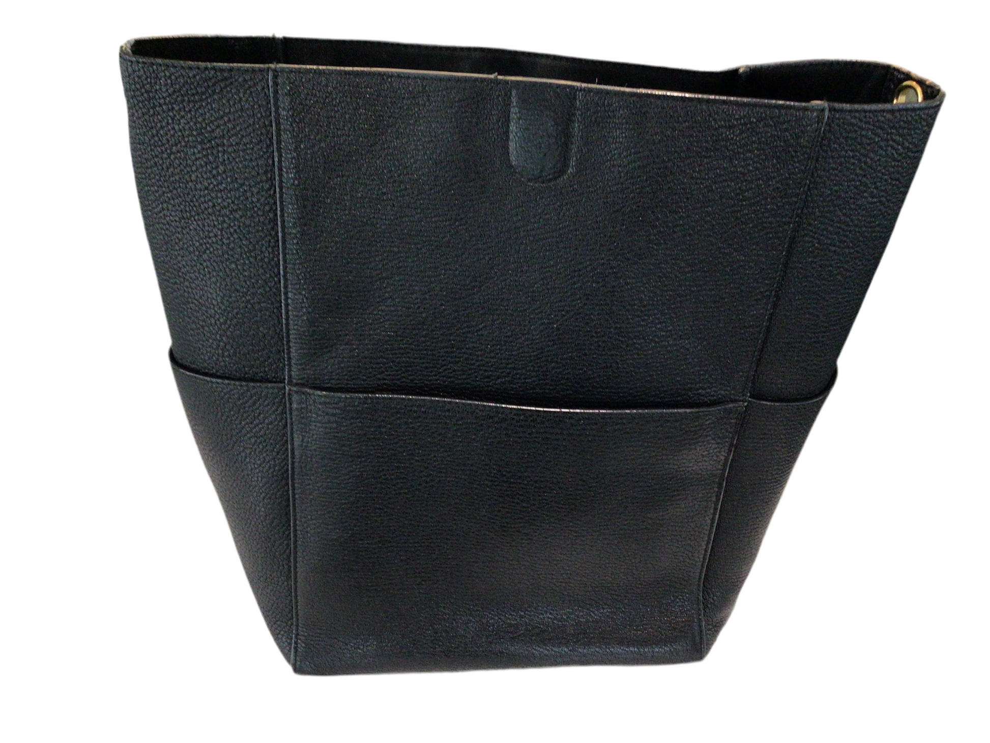 Design: Features a minimalist bucket silhouette with a spacious, unlined interior. Equipped with four external flat pockets and internal compartments, including a zip pocket and flat pocket, for organized storage.