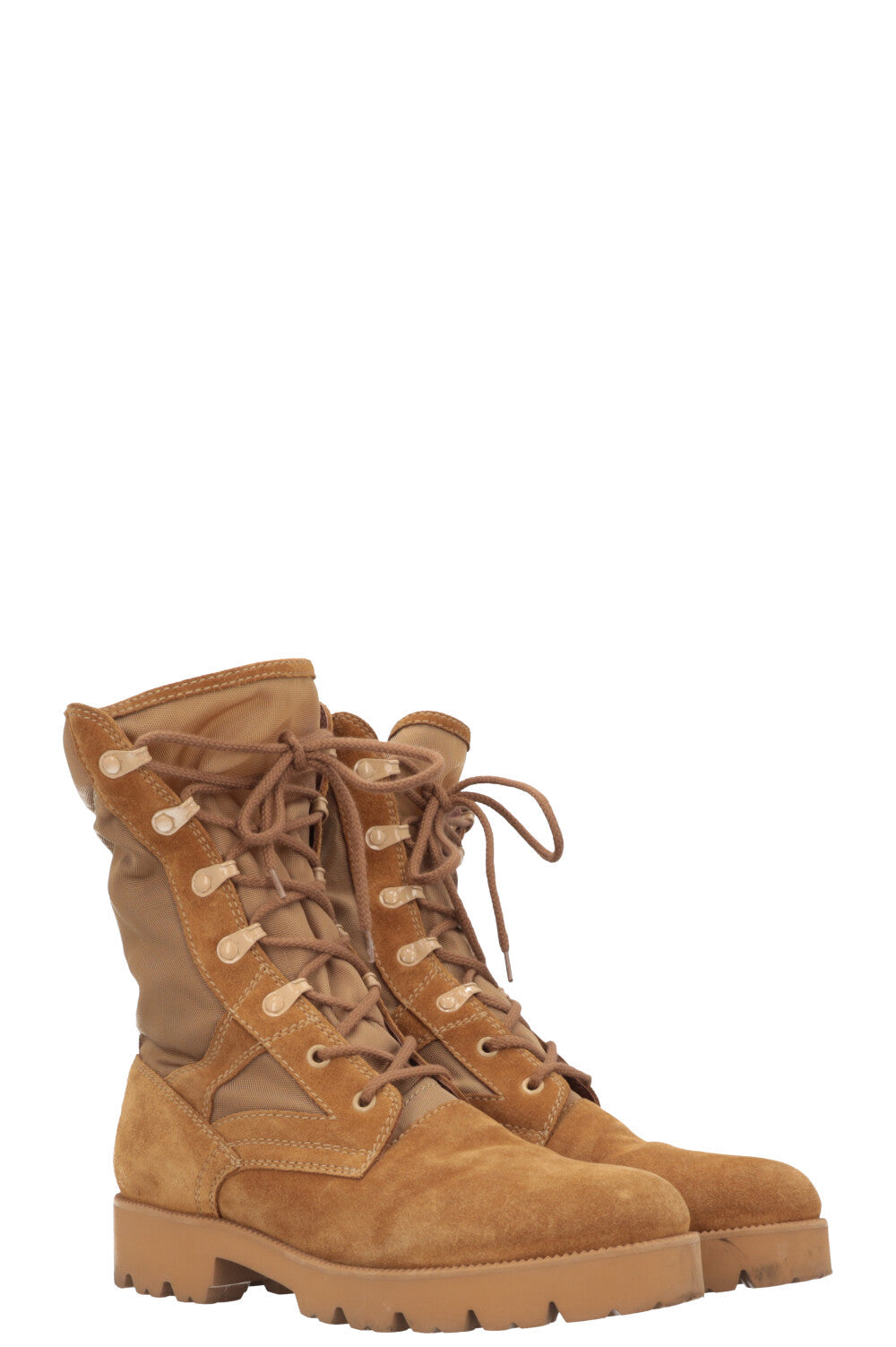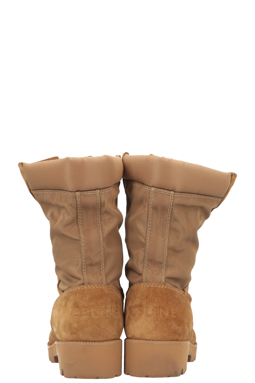 Diese Celine Boots aus beigefarbenem Wildleder bringen mühelosen Chic in jedes Outfit. Das hochwertige Material sorgt für eine edle Haptik, während das Design mit leichtem Outdoor-Vibe einen modernen Twist verleiht. Perfekt für alle, die stilvoll unterwegs sein wollen – egal ob in der Stadt oder auf neuen Pfaden.