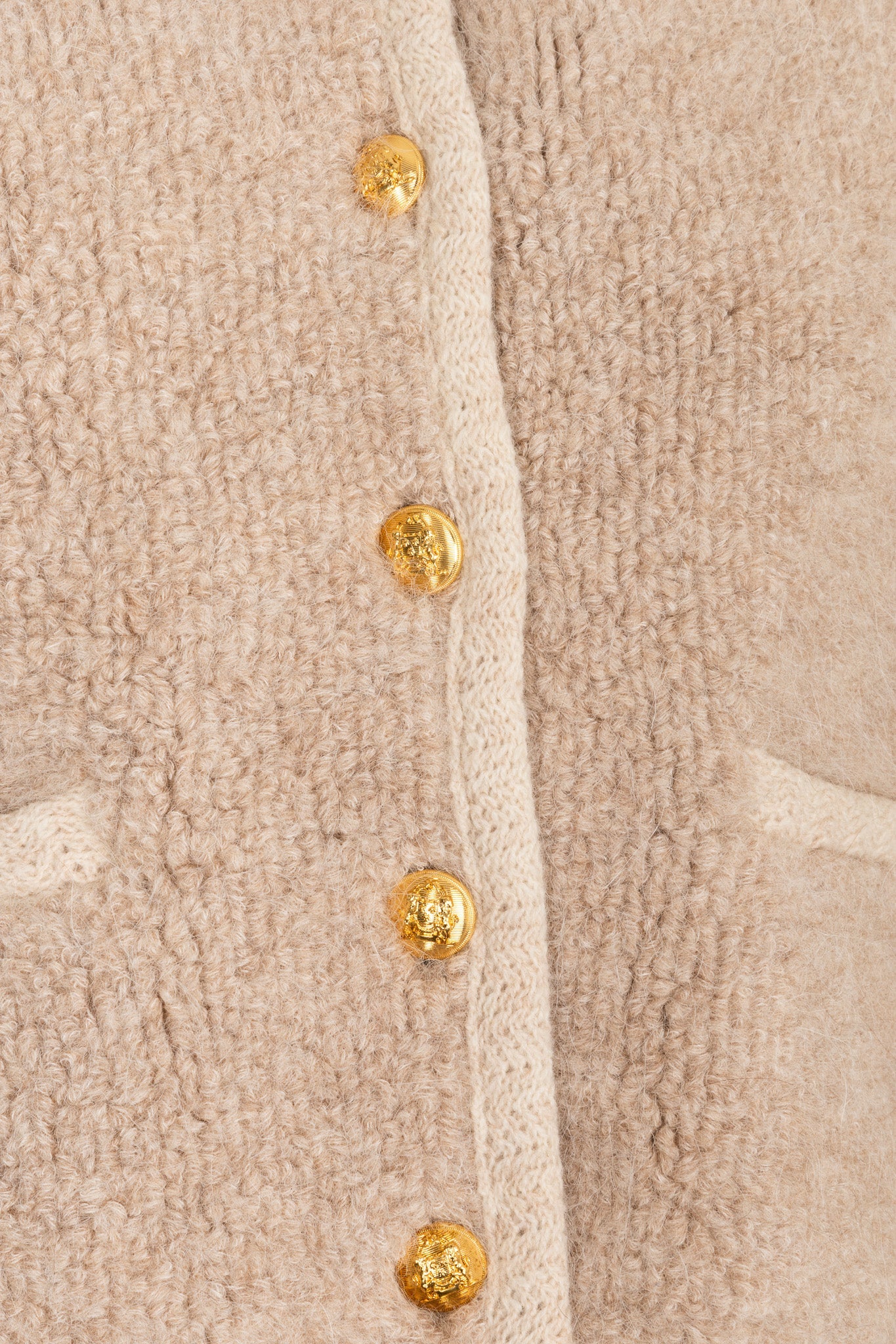 Die Celine Alpaca Knit Jacket ist der Inbegriff von kuscheligem Luxus. Gefertigt aus weicher Alpakawolle, bietet diese Strickjacke eine perfekte Mischung aus Komfort und schlichter Eleganz. Der dezente Oatmeal-Ton macht sie vielseitig kombinierbar und ideal für entspannte, aber stilvolle Outfits. Die hochwertige Verarbeitung und das minimalistische Design unterstreichen Celine's charakteristische Ästhetik, was diese Jacke zu einem zeitlosen Must-have für die kalte Jahreszeit macht.