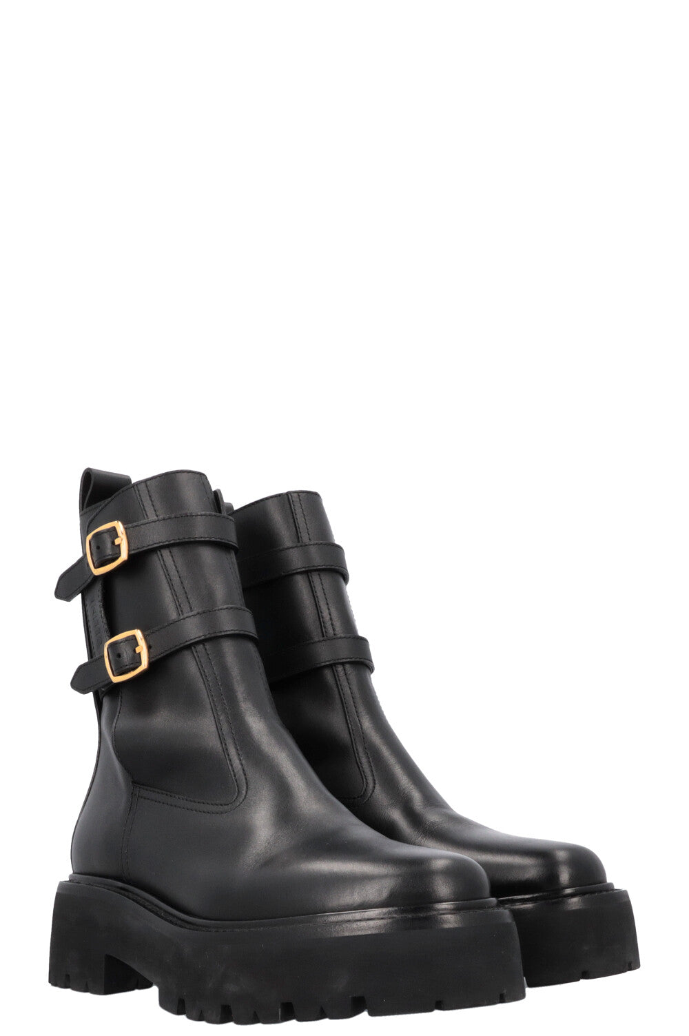 Die Celine Buckled Plateau Moto Boots in Schwarz kombinieren einen modernen, rebellischen Look mit einer edlen Eleganz. Die markanten Schnallen und das Plateau-Design verleihen dem klassischen Motorradstil einen modischen Twist. Diese Boots aus hochwertigem Leder bieten nicht nur einen auffälligen Look, sondern auch hohen Tragekomfort und Vielseitigkeit.