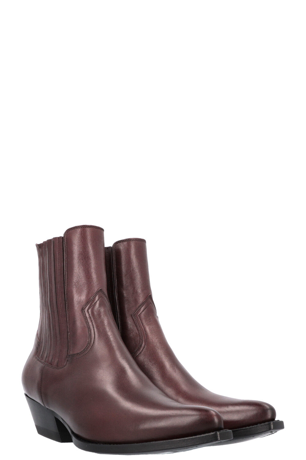 Die Celine Cowboy Ankle Boots vereinen einen klassischen Western-Stil mit modernem Design. Das tiefrote Leder und die markanten Details verleihen diesen Boots einen eleganten, aber dennoch wilden Look. Mit ihren präzise gearbeiteten Nähten und der stabilen Absatzhöhe bieten sie nicht nur einen modischen Akzent, sondern auch Komfort und Halt.