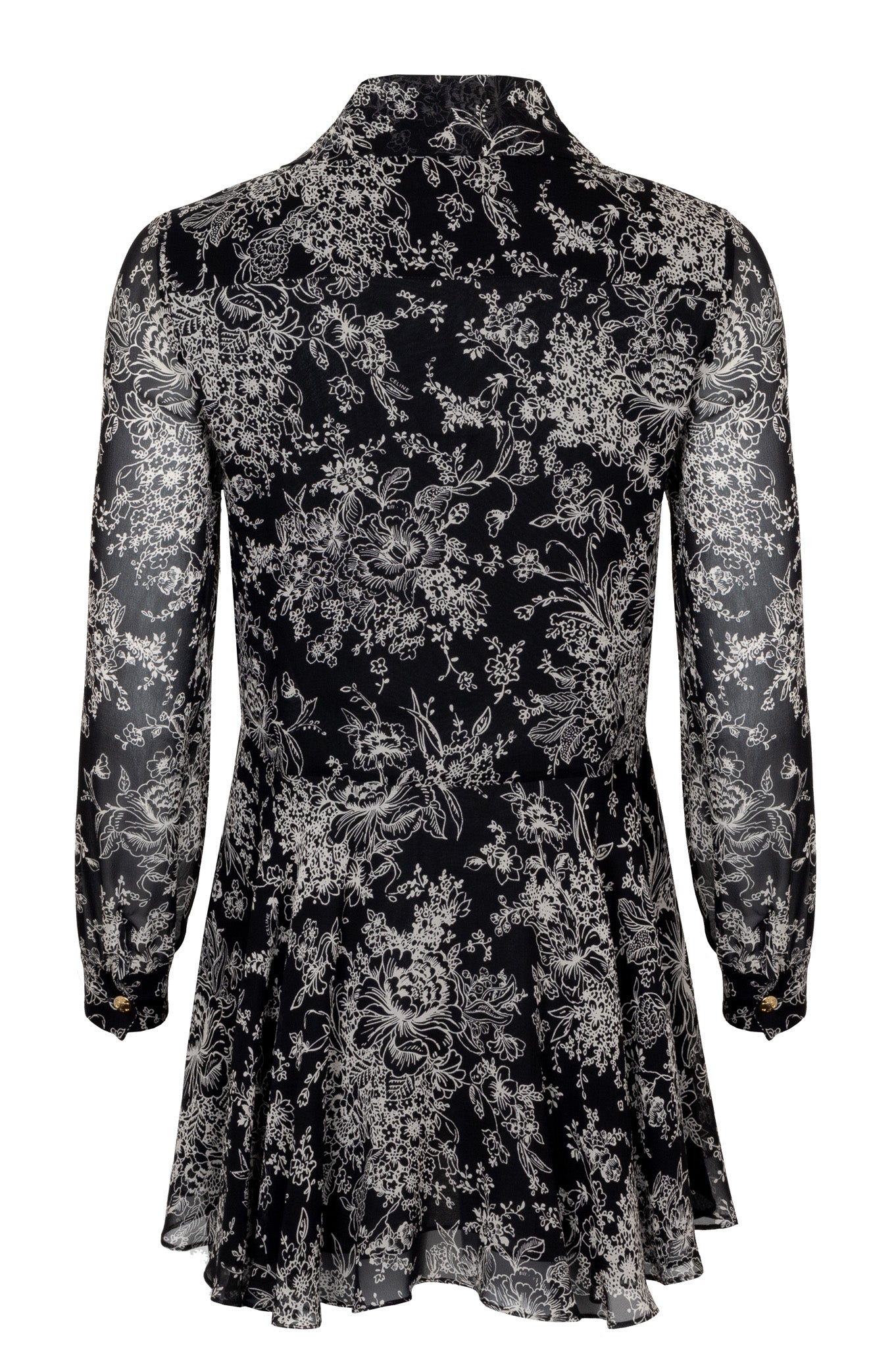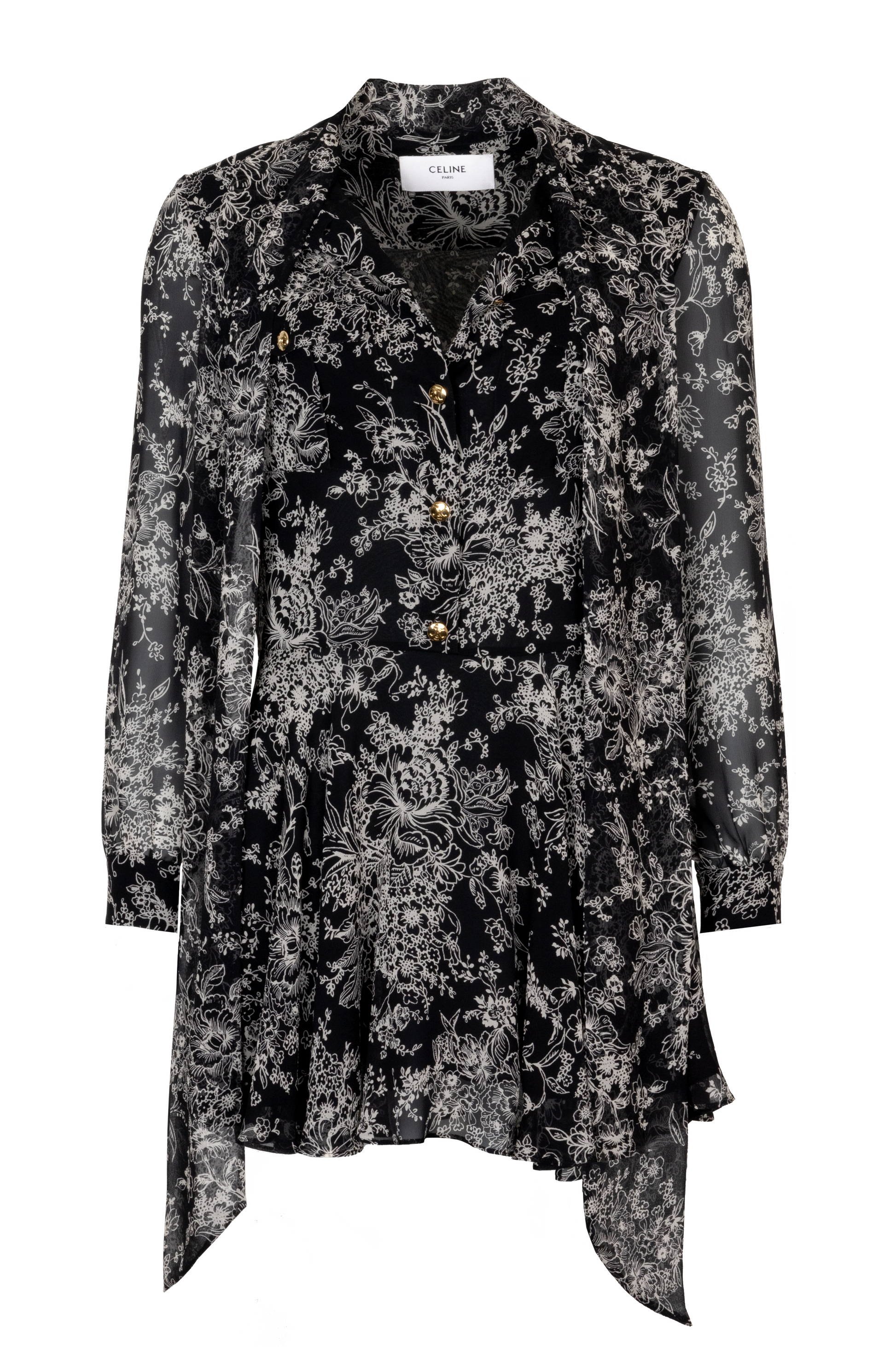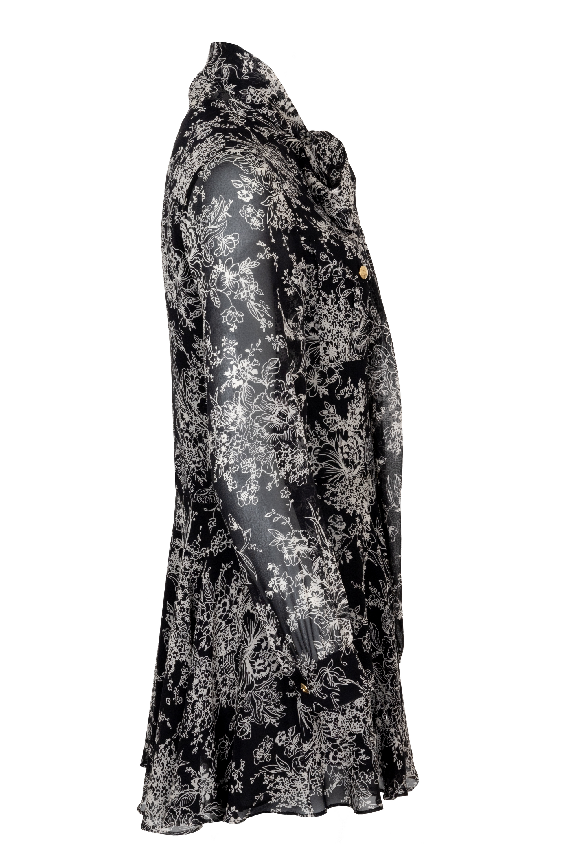 CELINE Floral Print Silk Dress Black