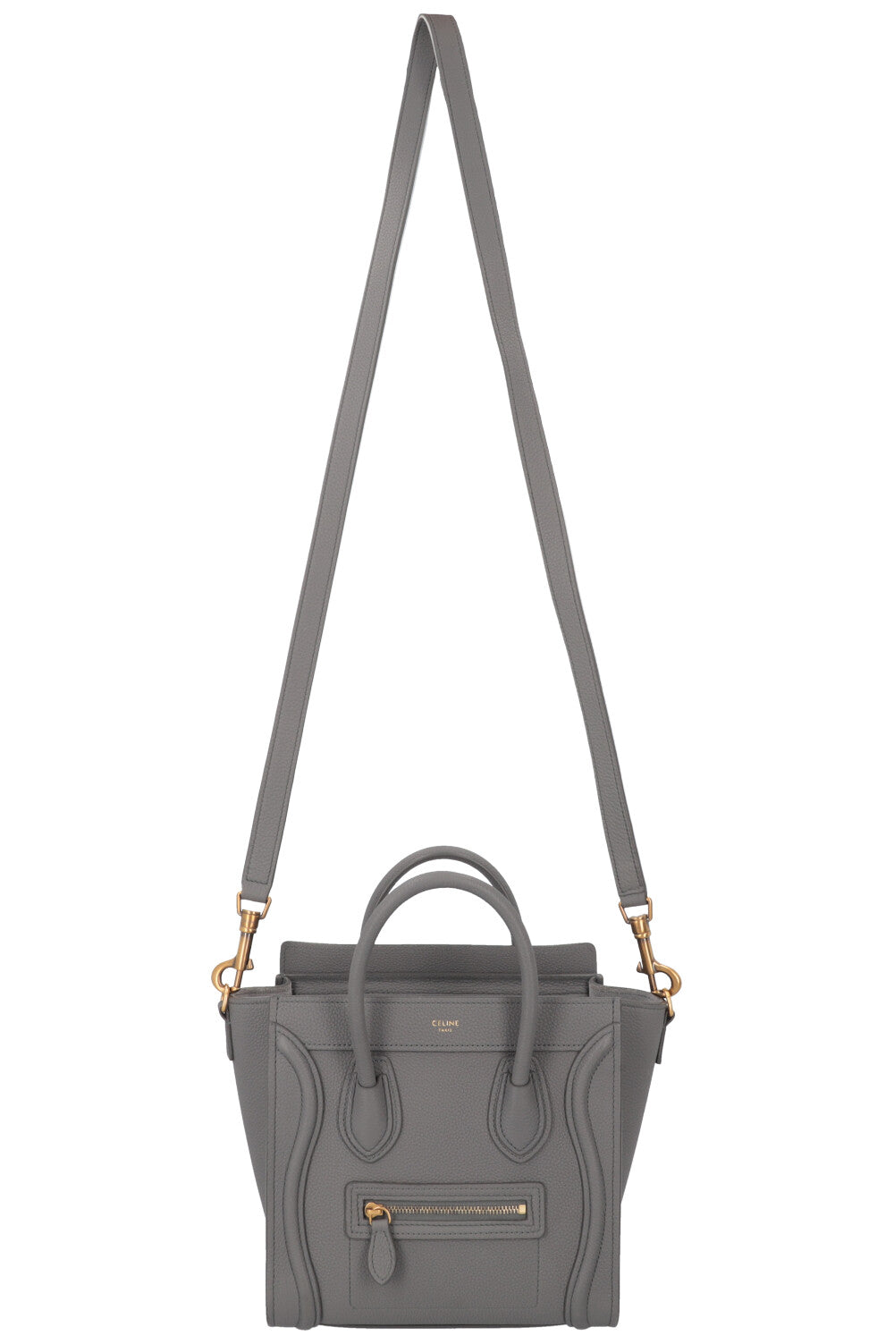 Die Celine Nano Luggage Crossbody Bag in Grau ist eine kompakte Ikone, die mit ihrer markanten Form und vielseitigen Tragweise punktet. Die charakteristischen Linien und der einzigartige "Smile"-Look verleihen ihr eine unverkennbare Eleganz, die sowohl für den Alltag als auch für besondere Anlässe geeignet ist. Dank des abnehmbaren Crossbody-Riemens kannst du sie flexibel tragen.