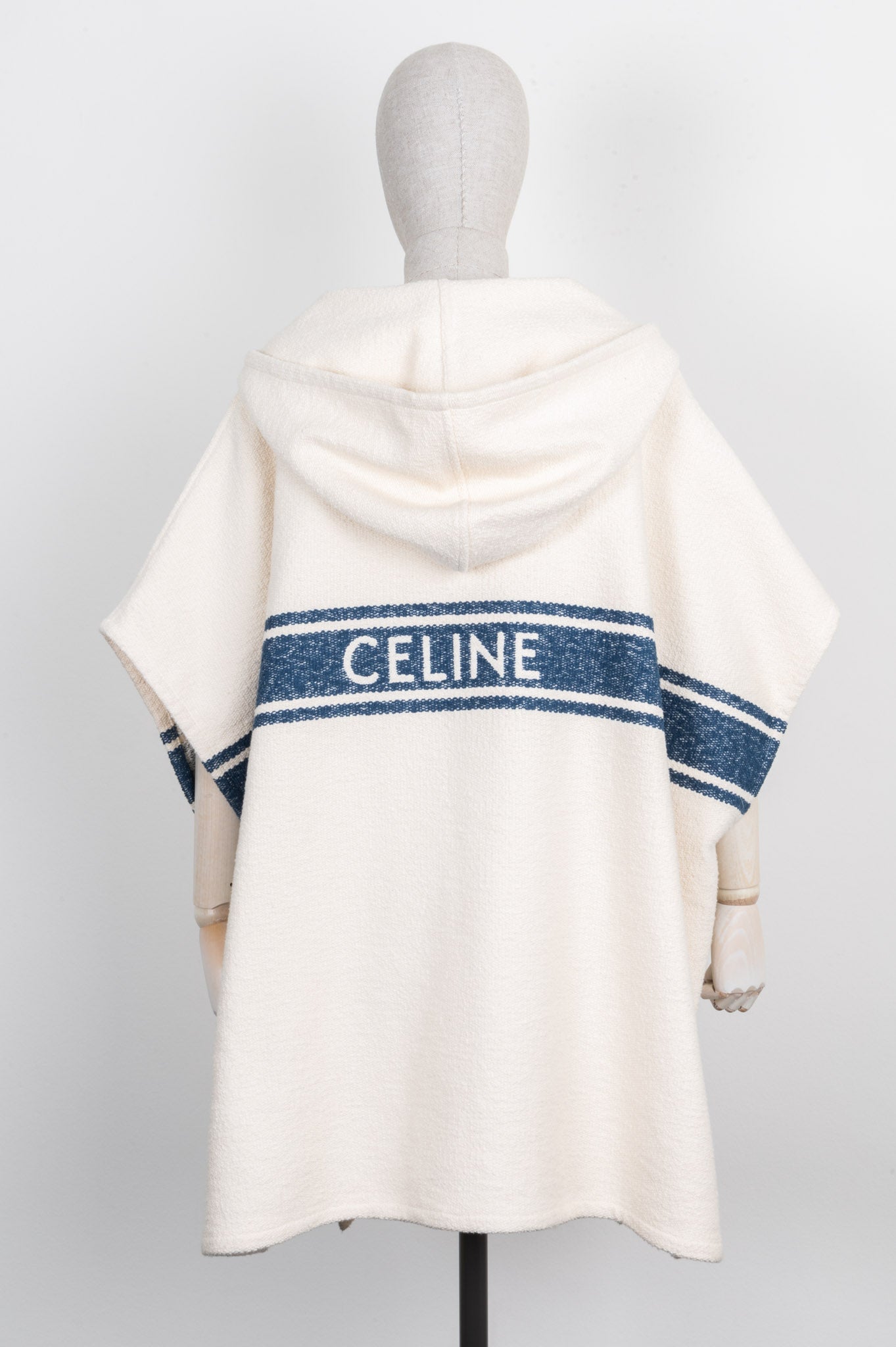 CELINE Poncho Cotton Ivory & Blue