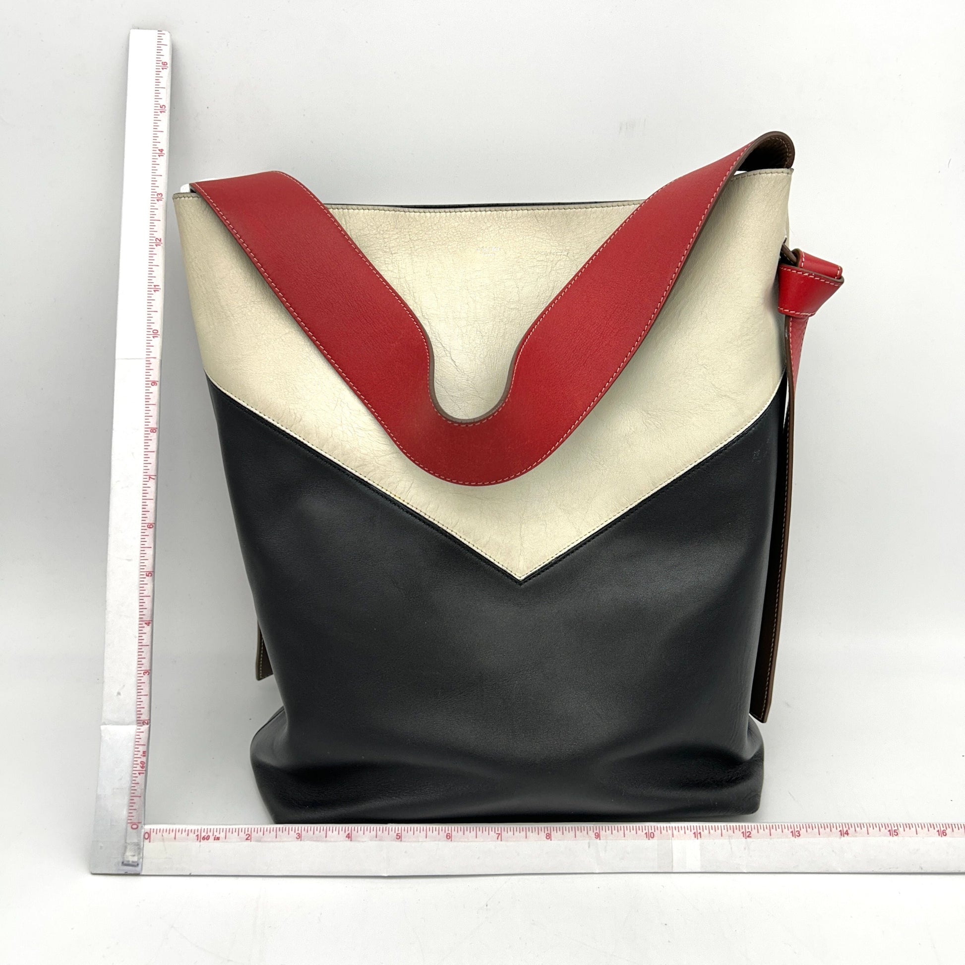 CELINE Shiny Smooth Calfskin Twisted Cabas Ivory Black LA14631