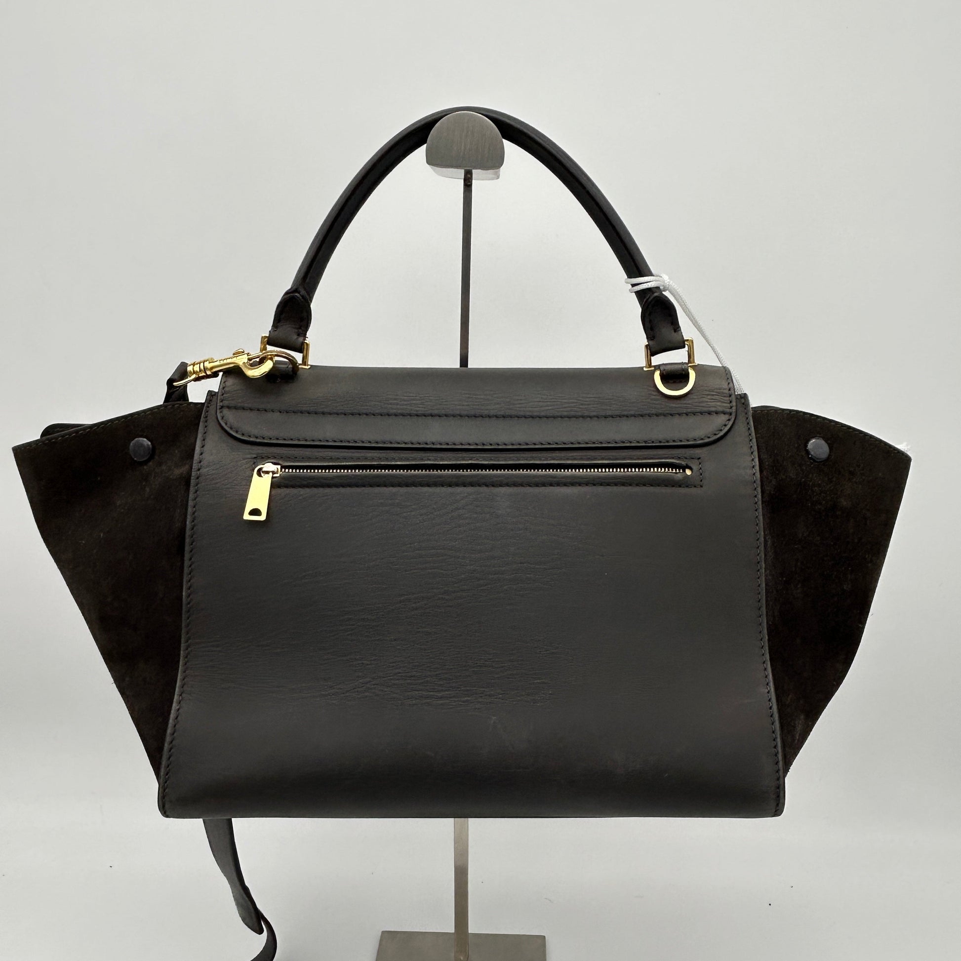 Celine Smooth Calfskin Suede Medium Trapeze Bag Dark Grey