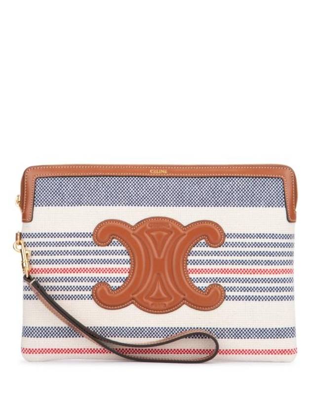 CELINE Strap Striped Textile Calfskin Pouch Bag