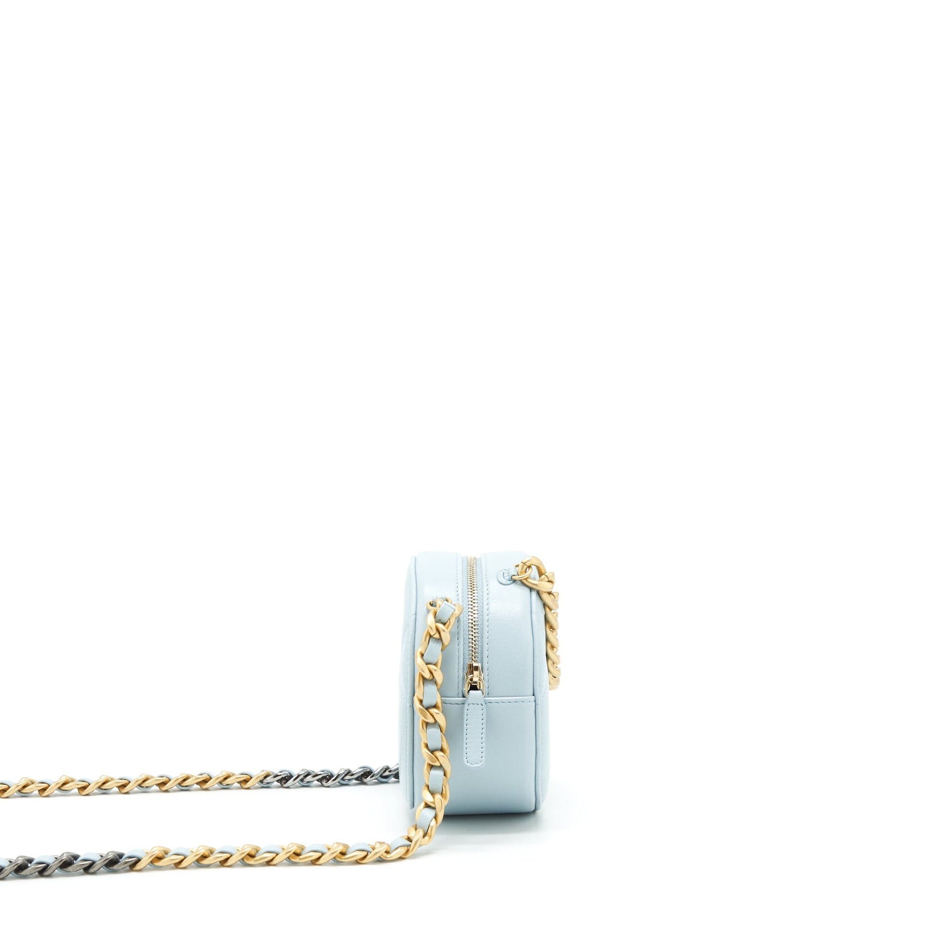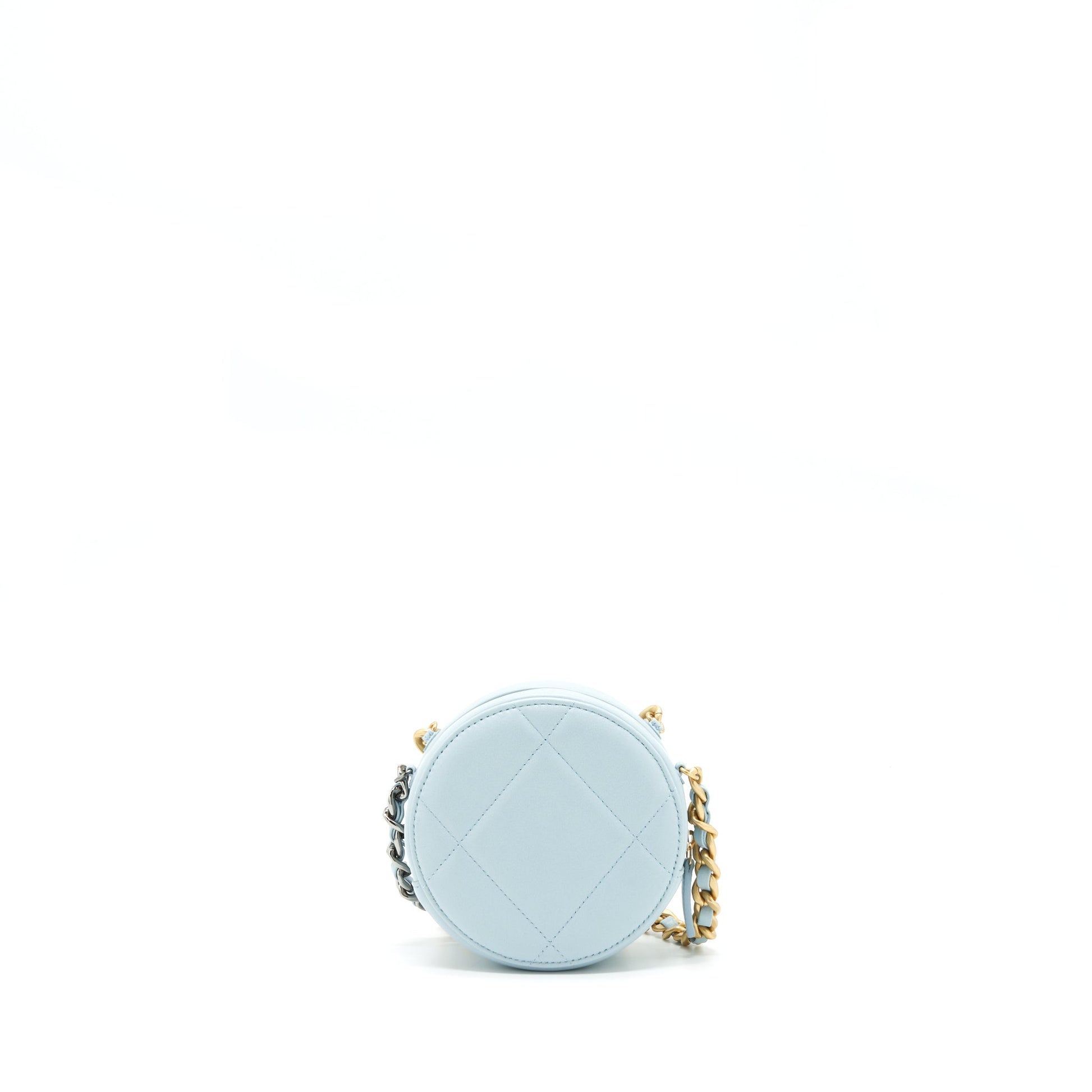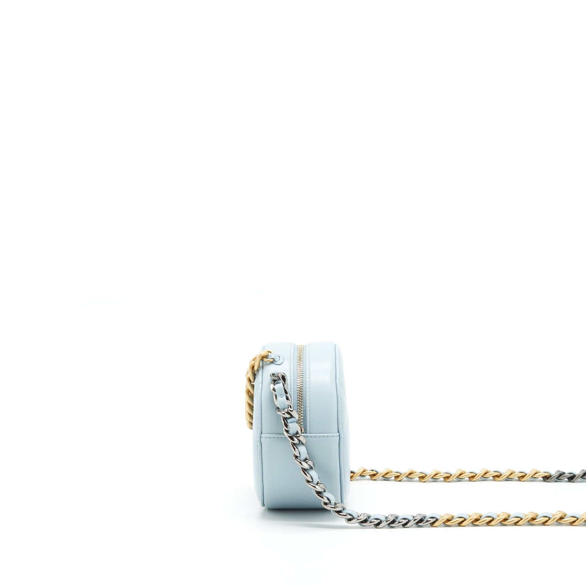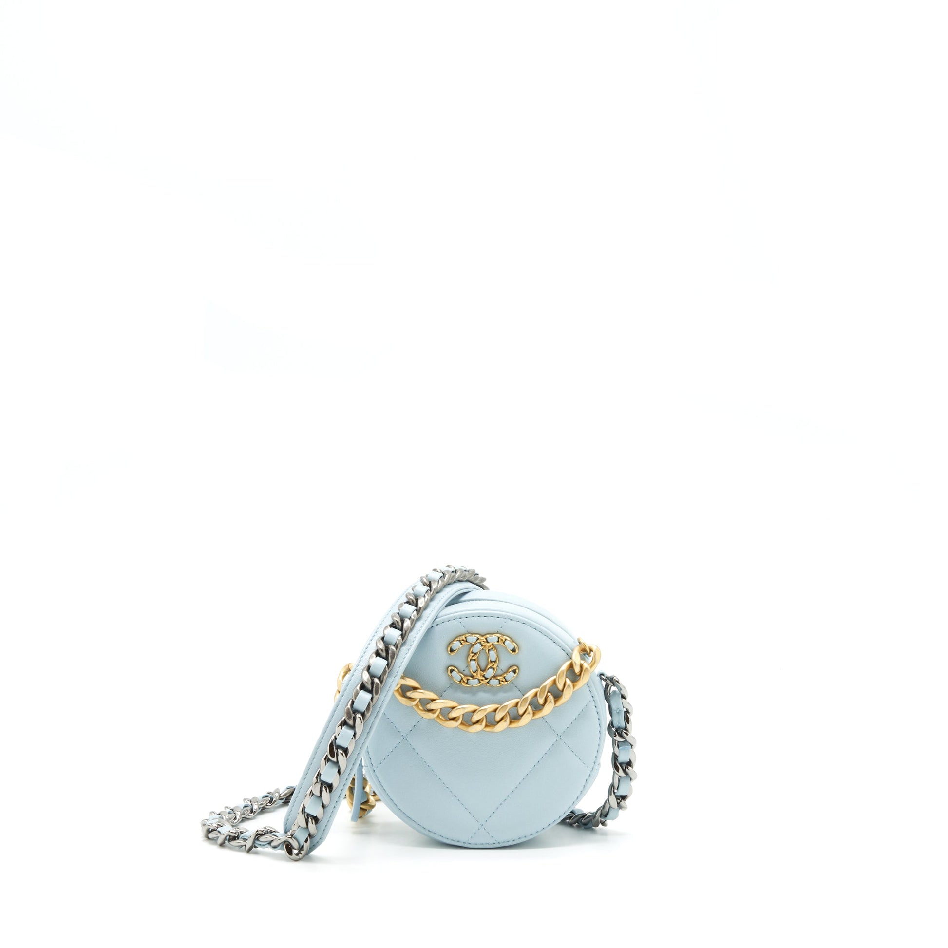 Chanel 19 Round Clutch With Chain Lambskin Light Blue