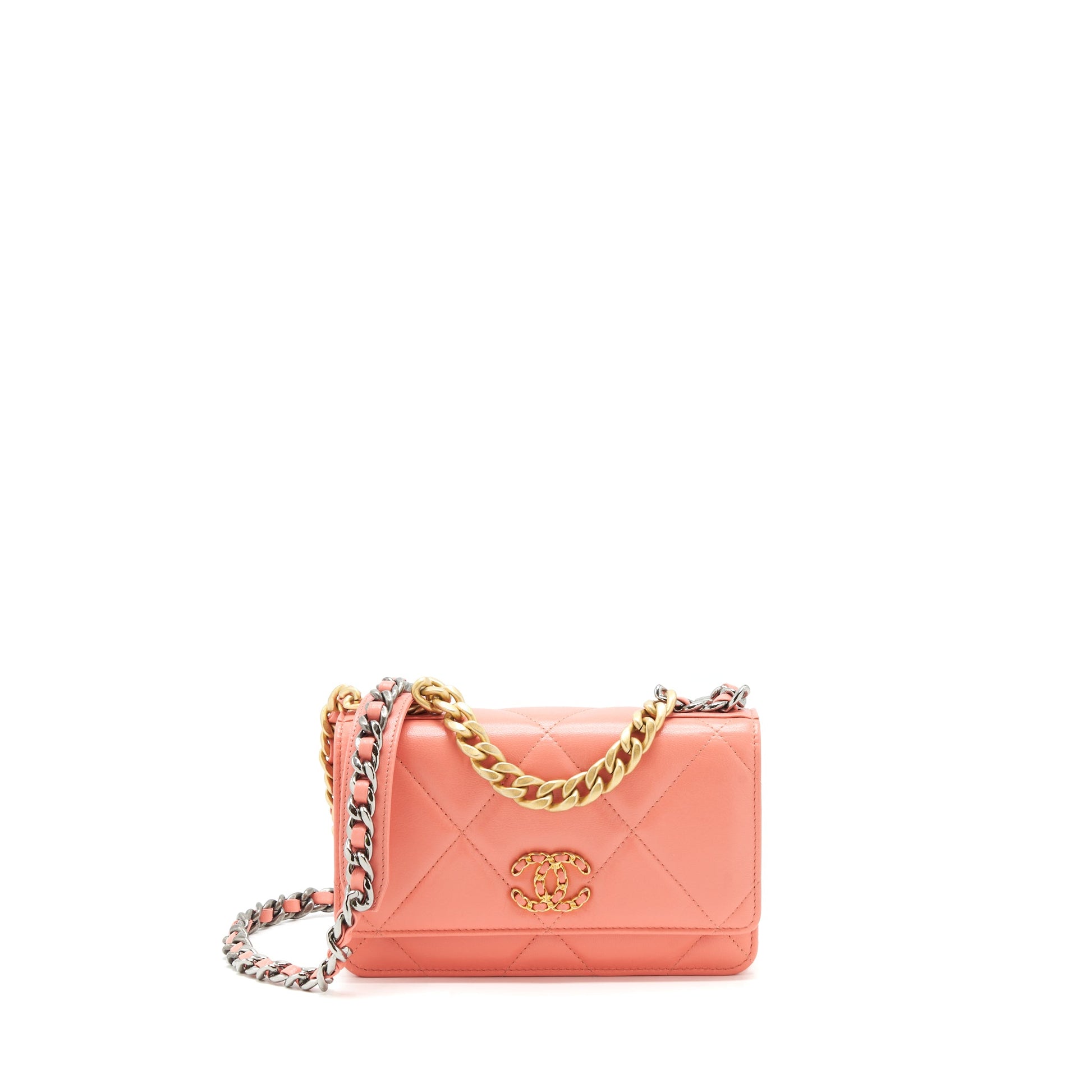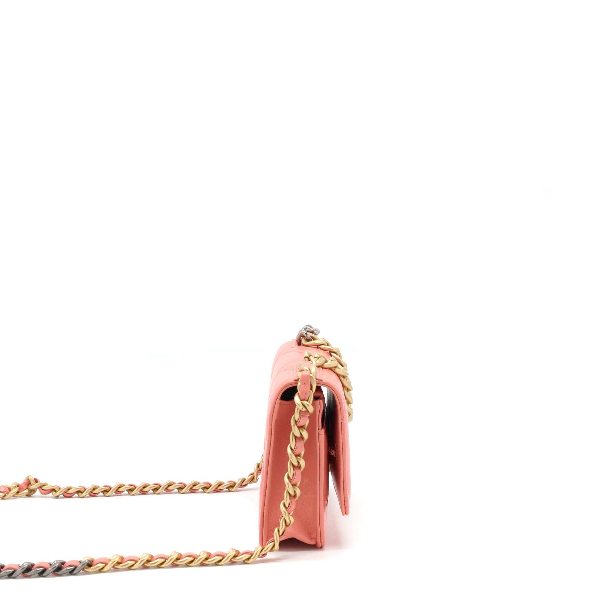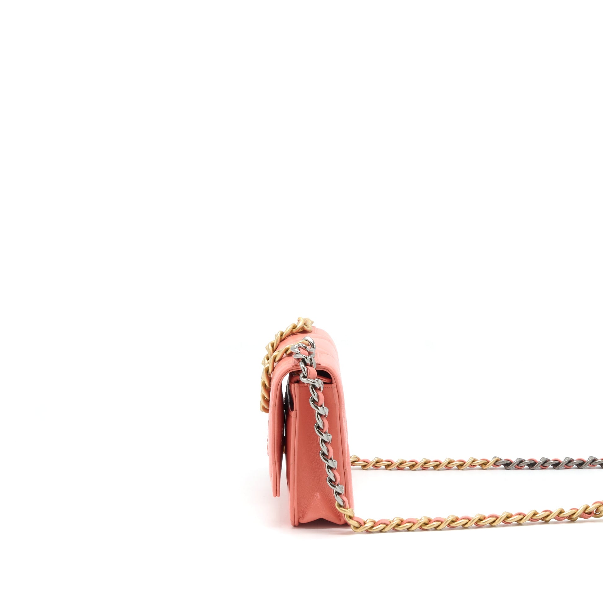 Chanel 19 Wallet on chain Goatskin Pink with Gold and silver hardware