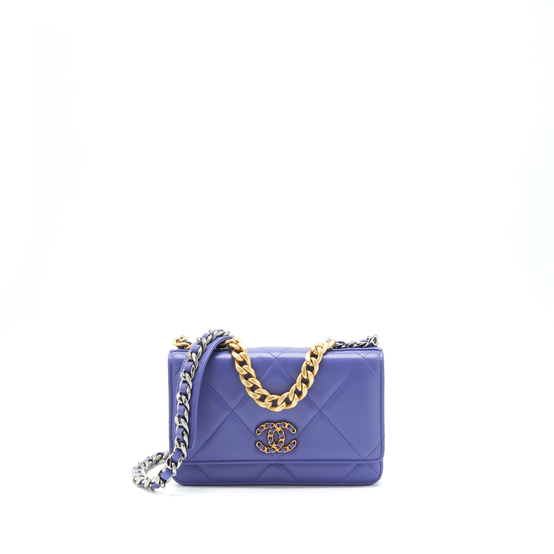 Chanel 19 wallet on chain Lambskin purple with Gold/silver hardware