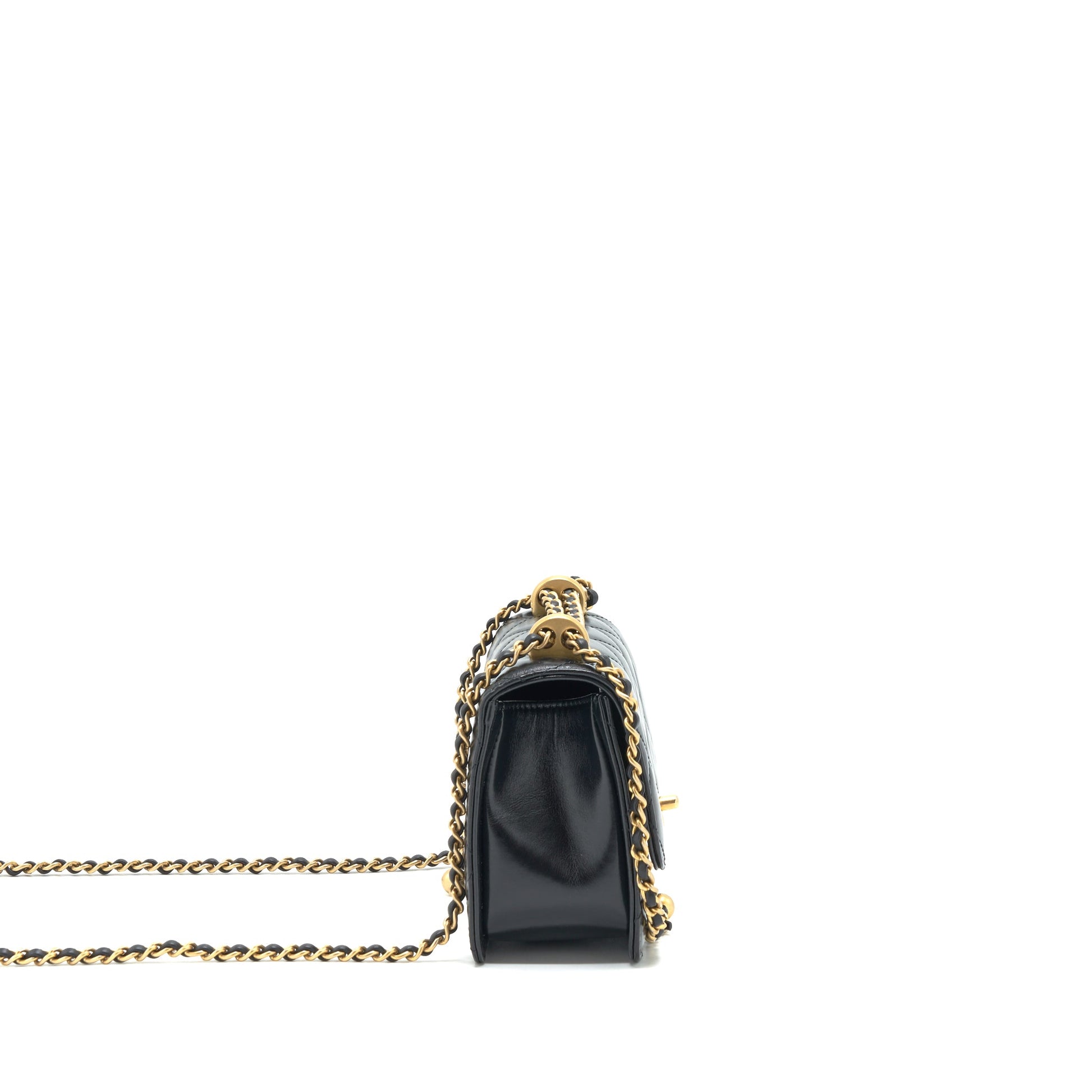 CHANEL 21A GOLD CRUSH FLAP BAG CALFSKIN Black GHW