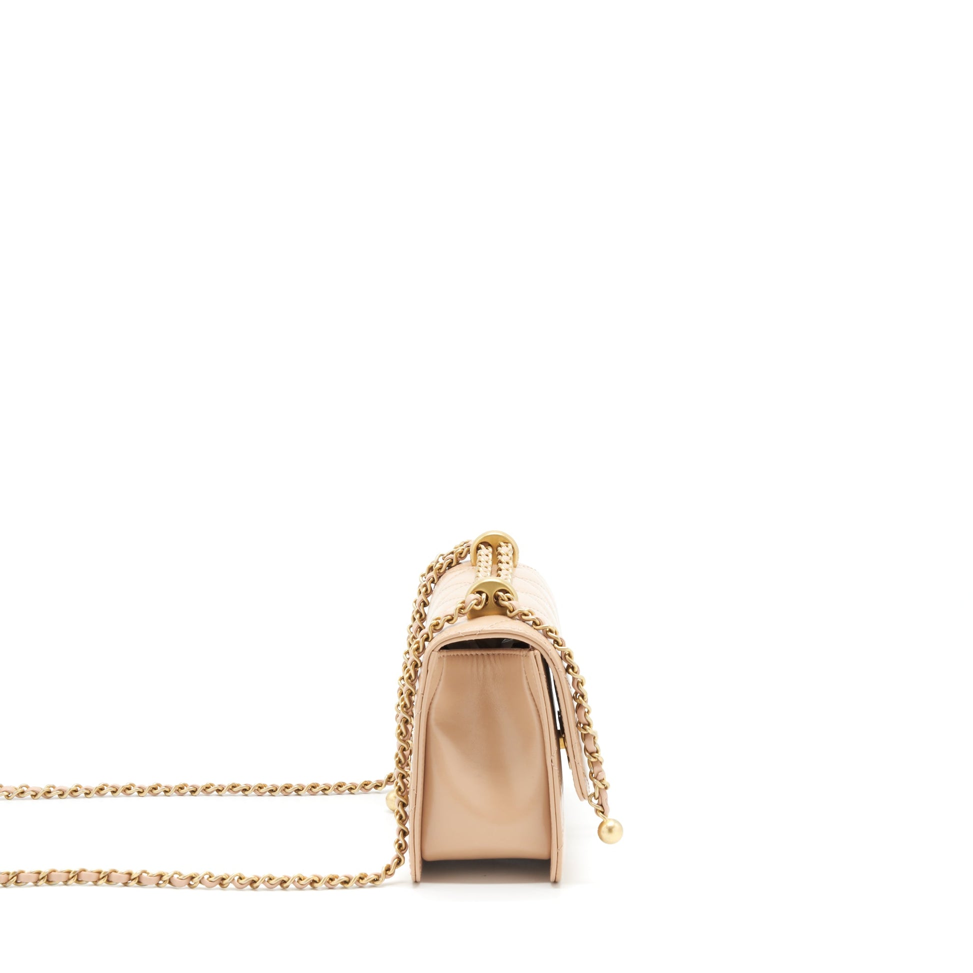 Chanel 21A Small Gold Crush Flap Bag Calfskin Beige GHW (Microchip)