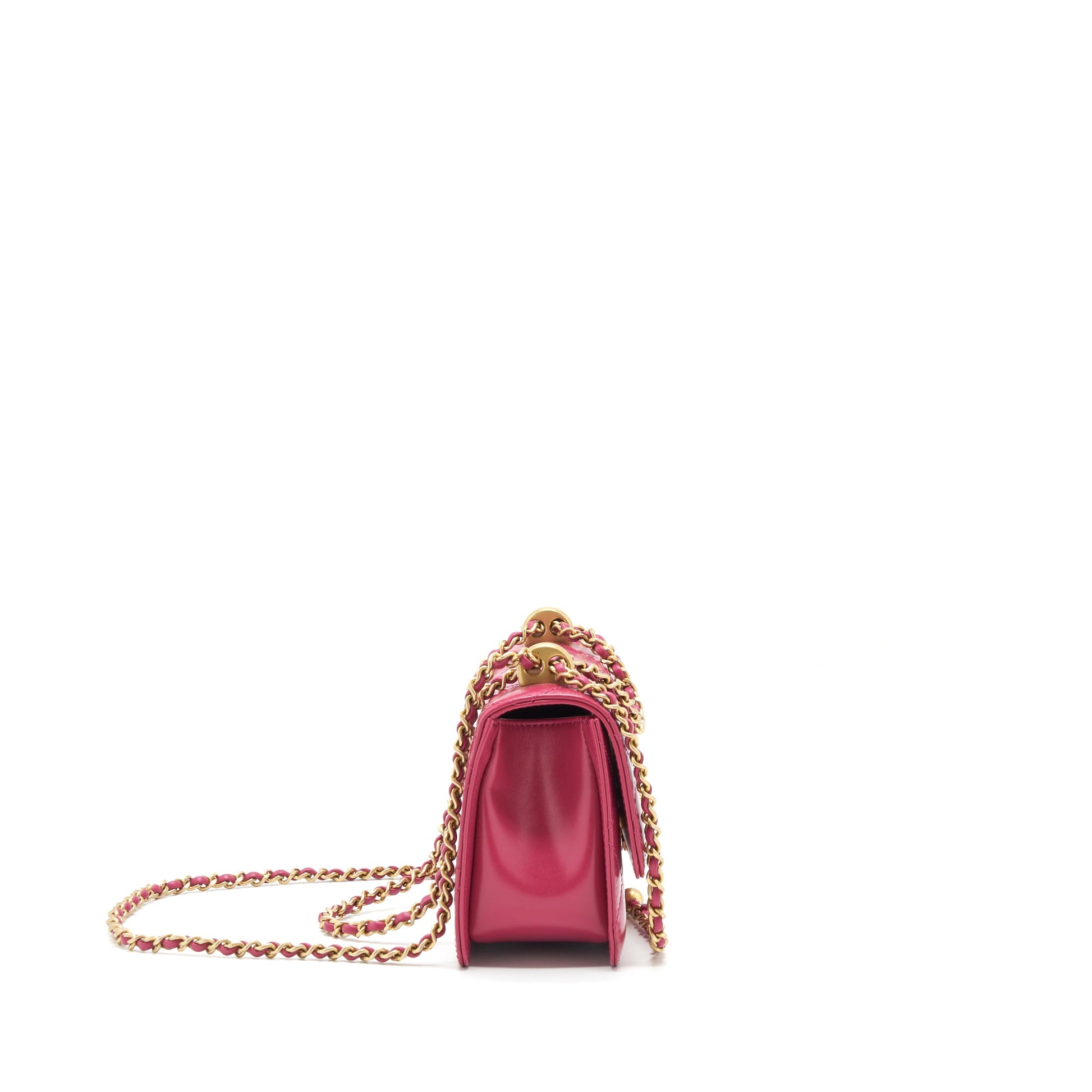Chanel 21A Small Gold Crush Flap Bag With Chain Calfskin Raspberry Pink GHW (Microchip)
