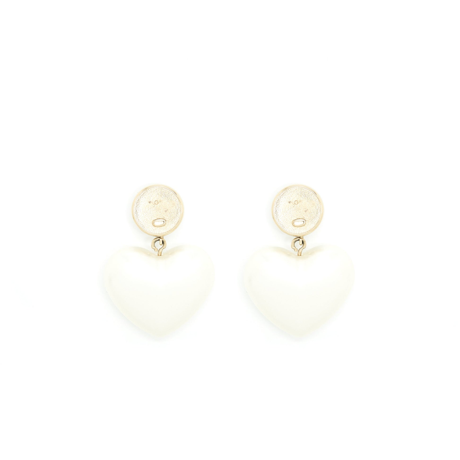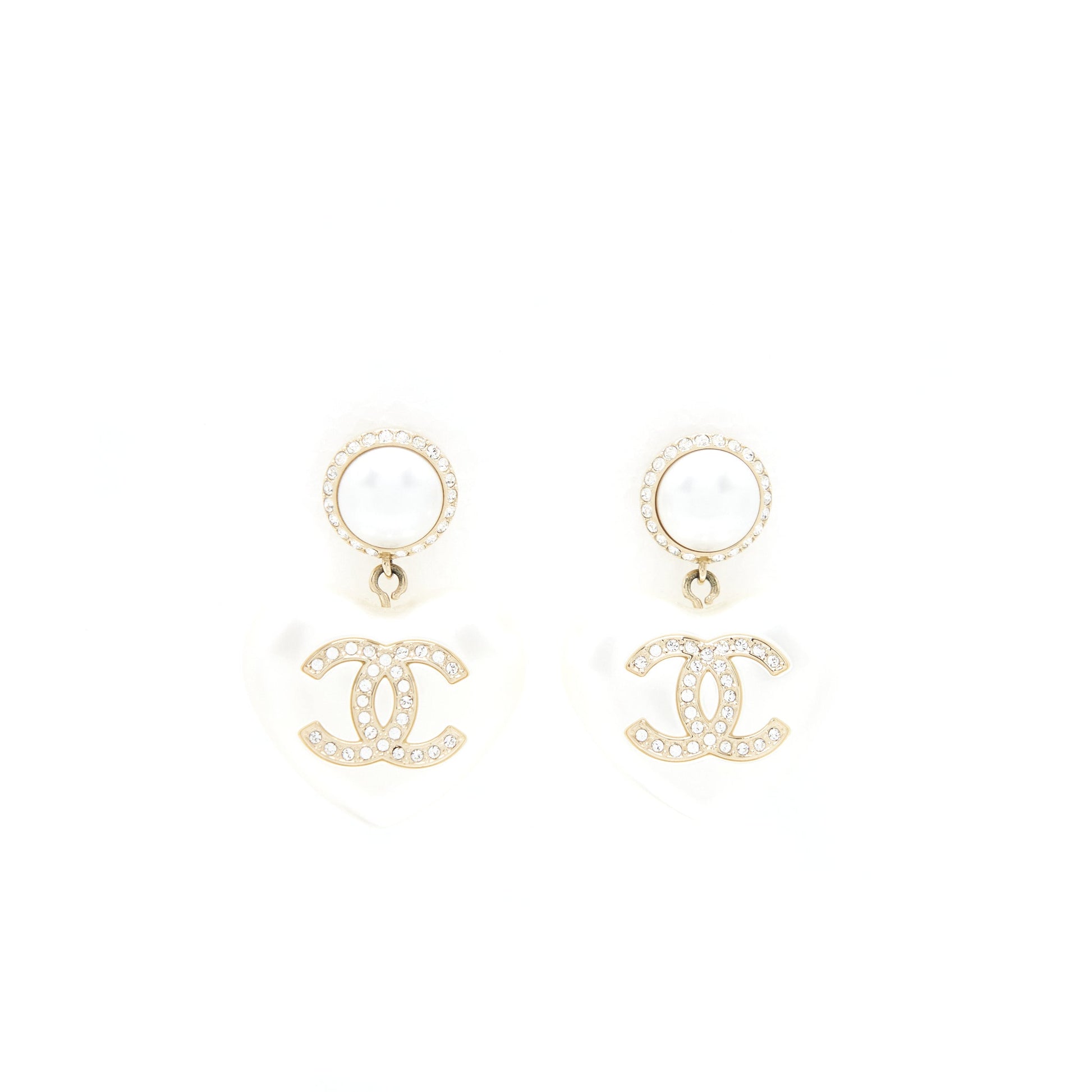 Chanel 21B Giant CC Heart Drop Earrings Light Gold Tone