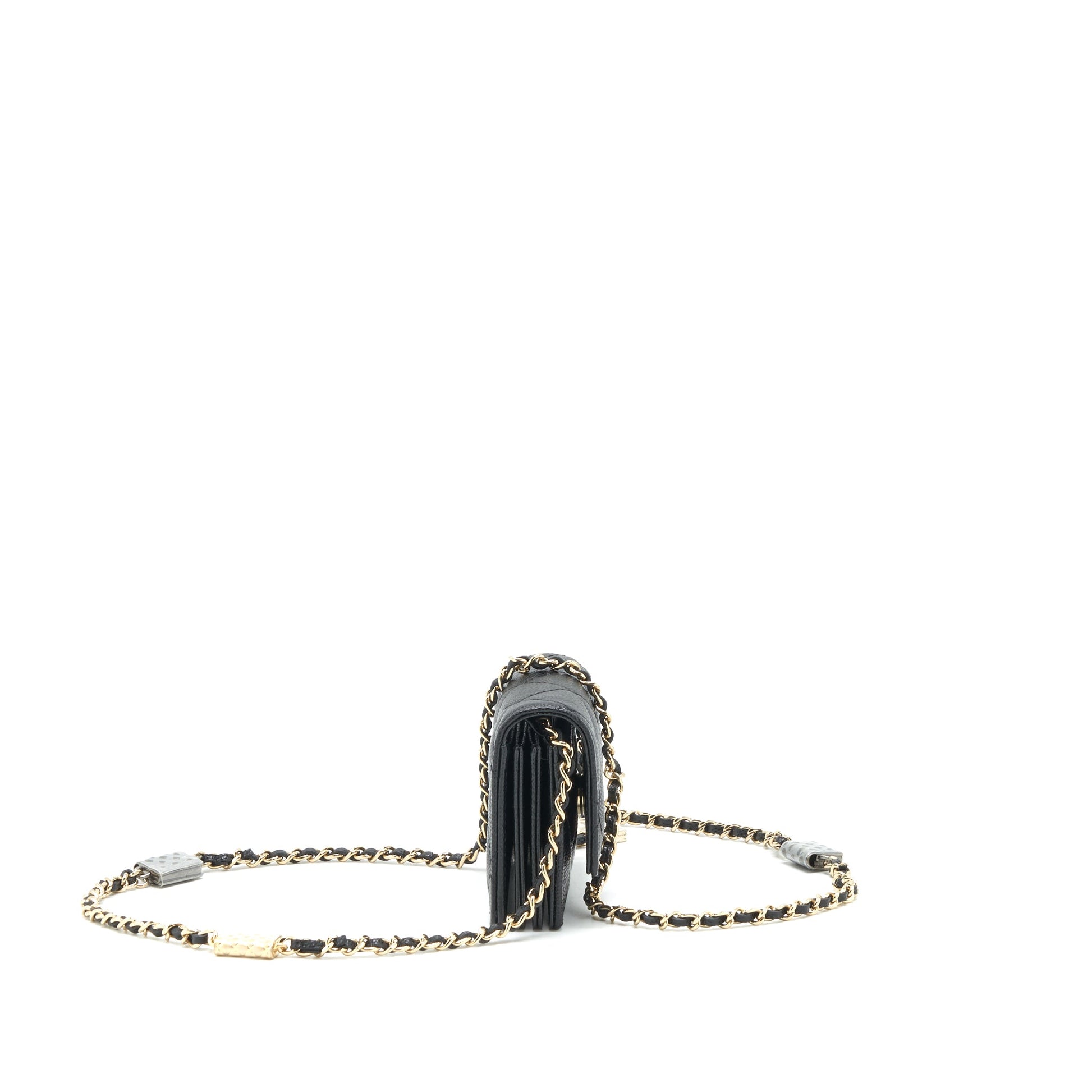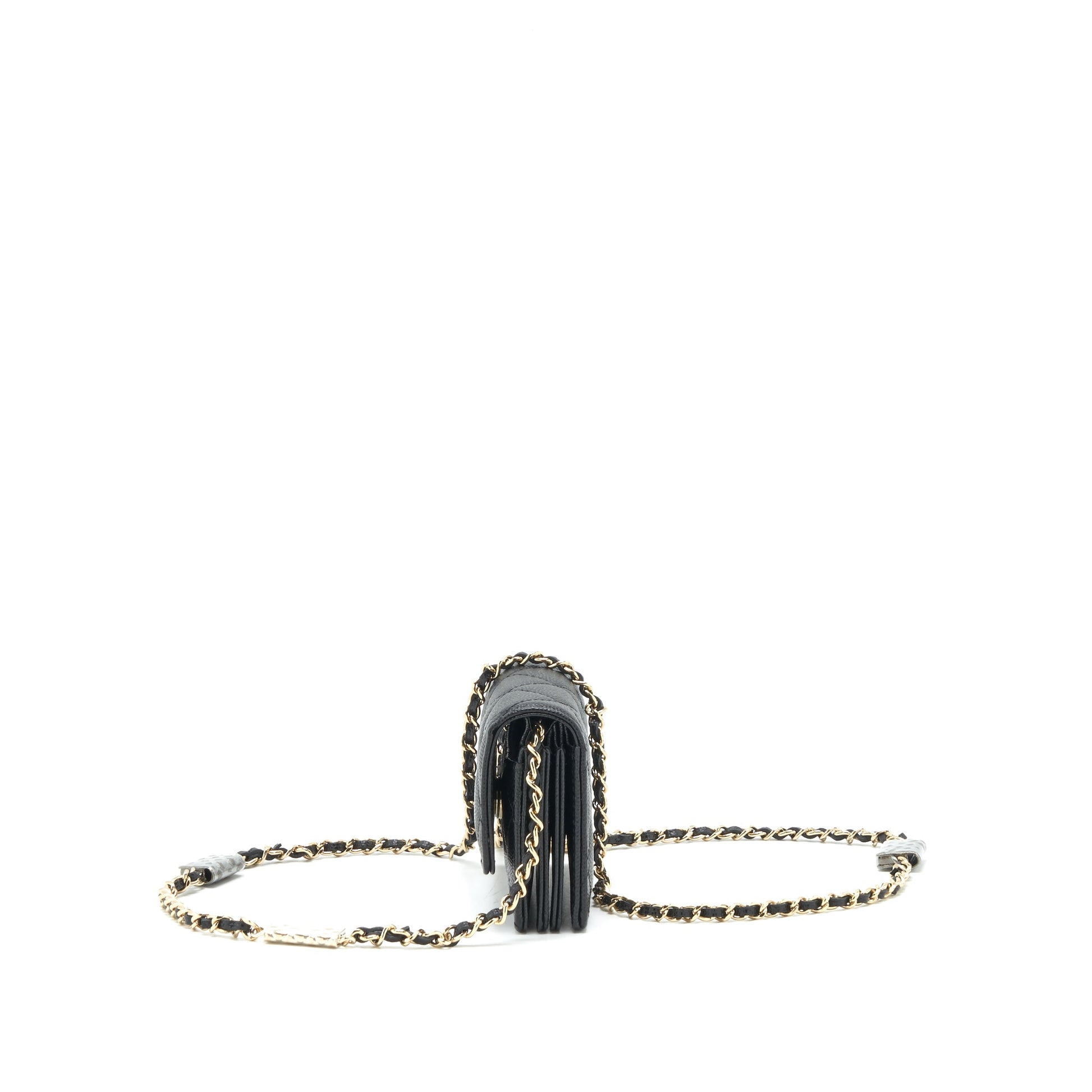 Chanel 21k Caviar mini flap cardholder with chain black LGHW