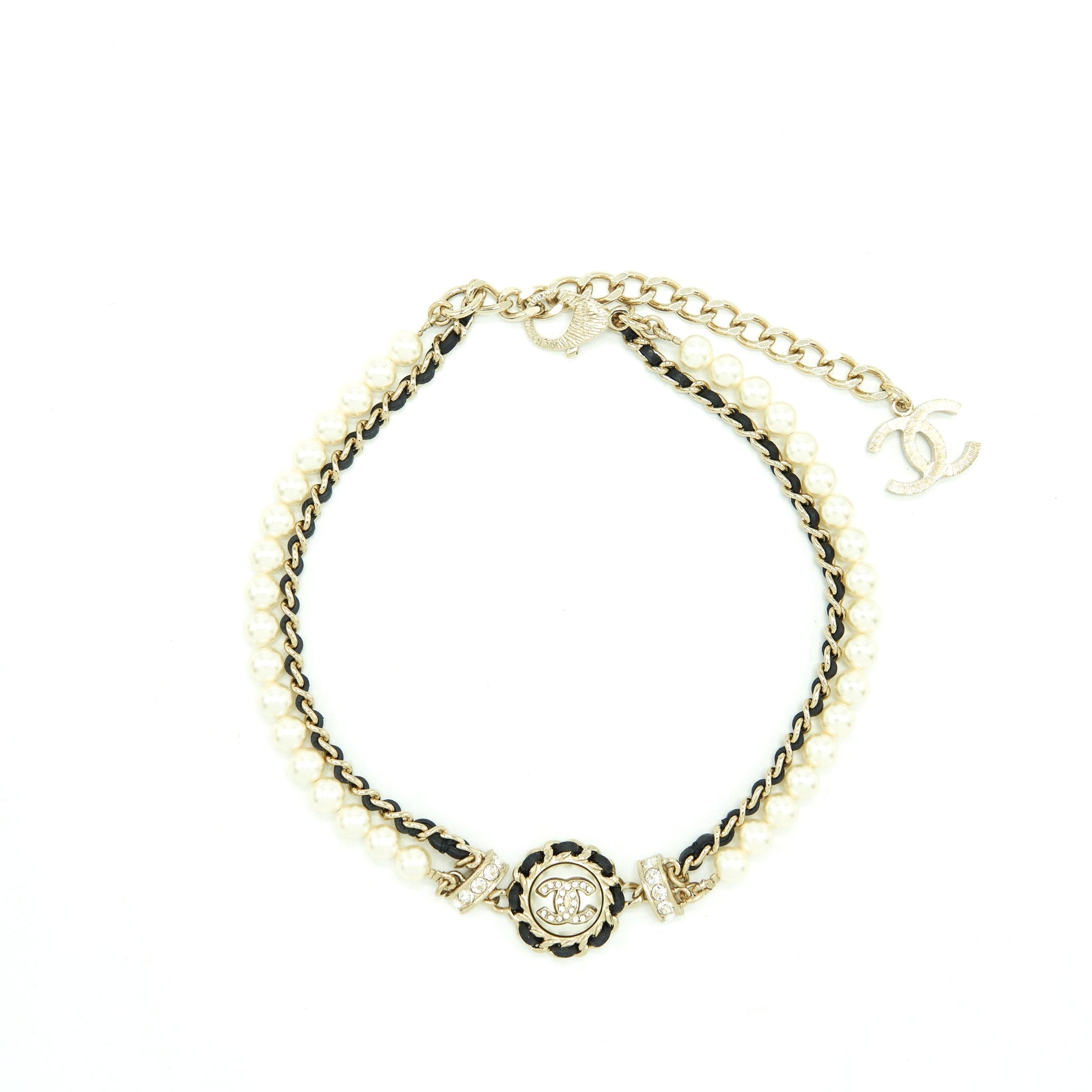Chanel 21K Pearl And Chain Choker Light Gold Tone