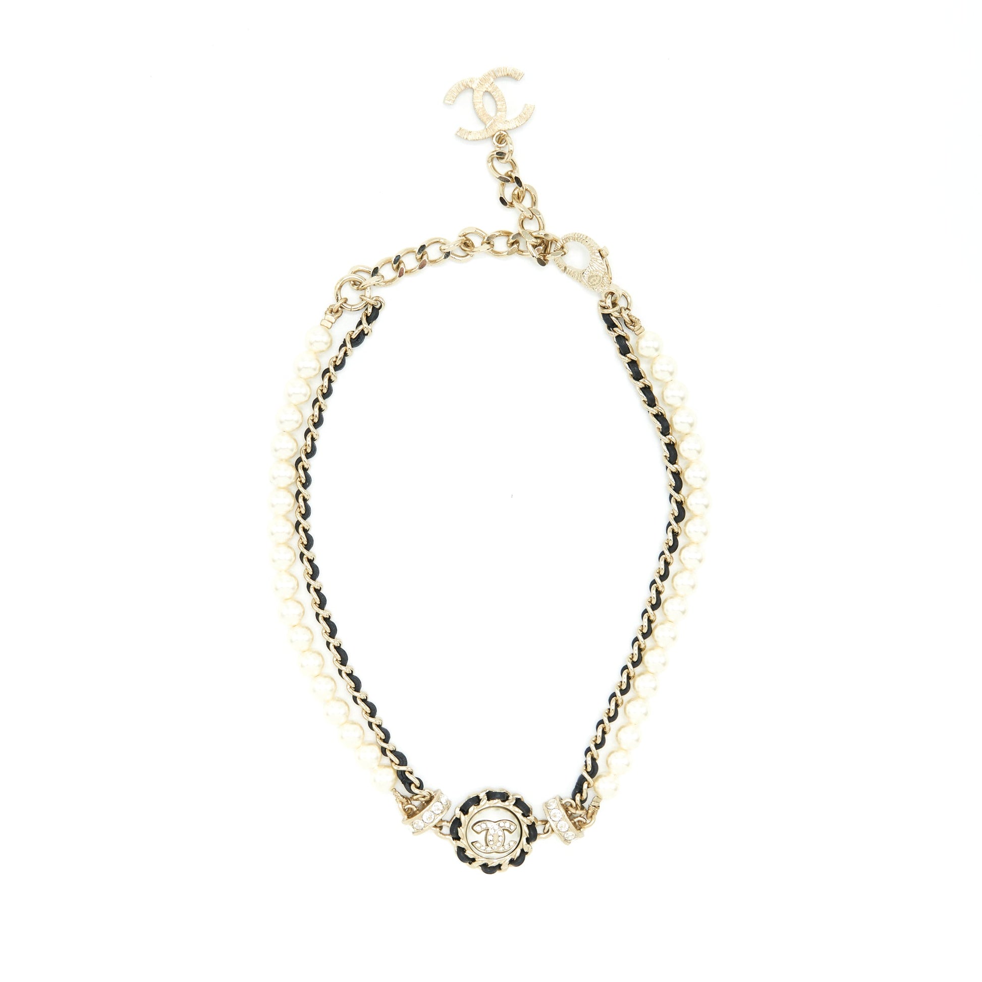 Chanel 21S Leather Chain/Pearl/Crystal Choker LGHW