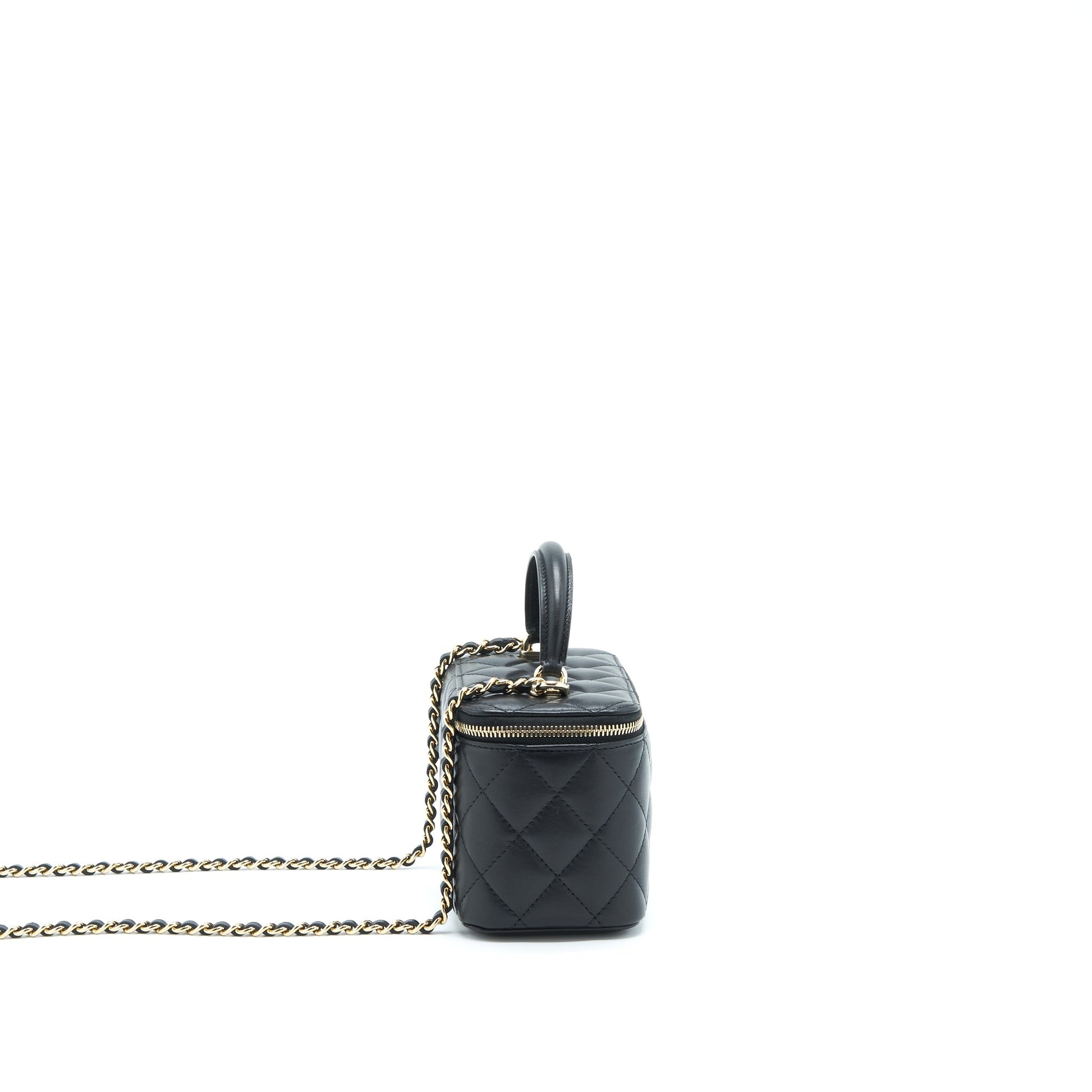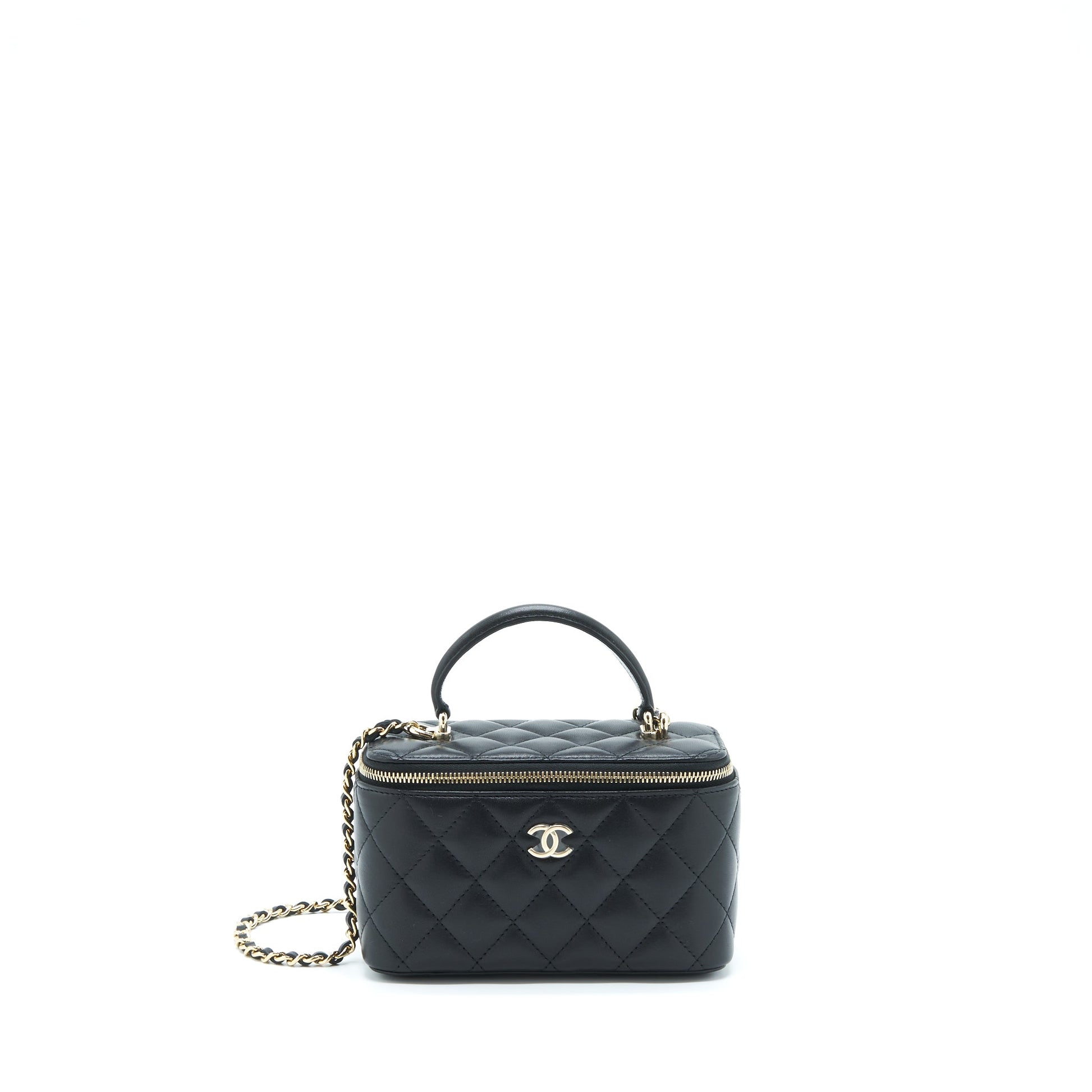 Chanel 22A Top Handle Long Vanity With Chain Lambskin Black LGHW