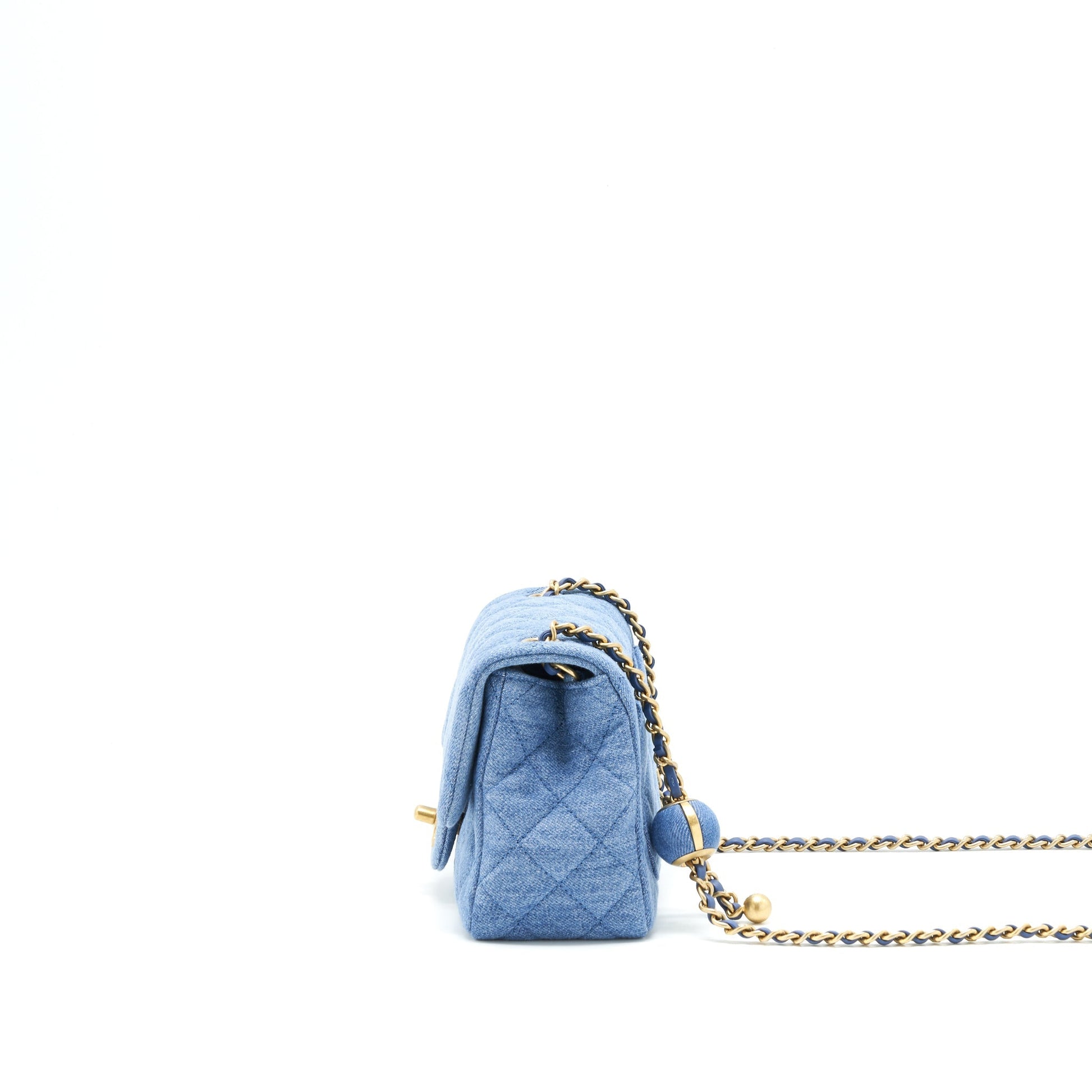 Chanel 22C Denim Pearl Crush Mini Square Flap Bag