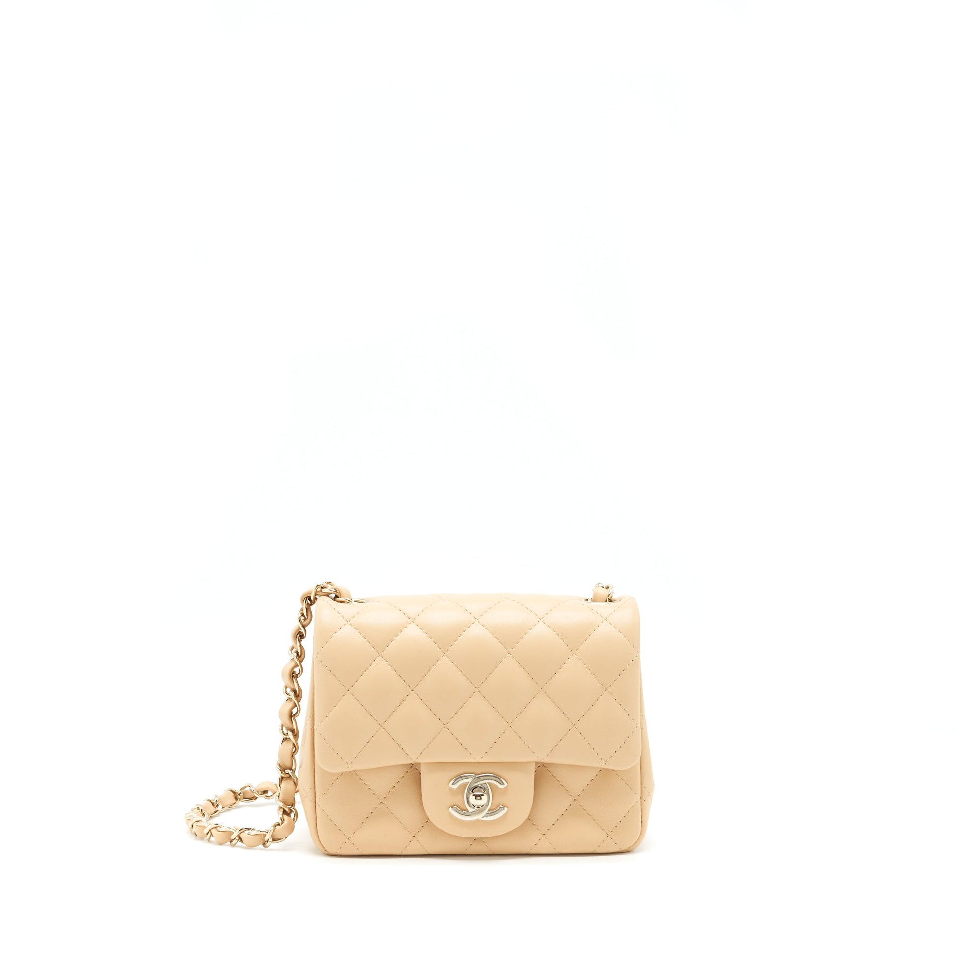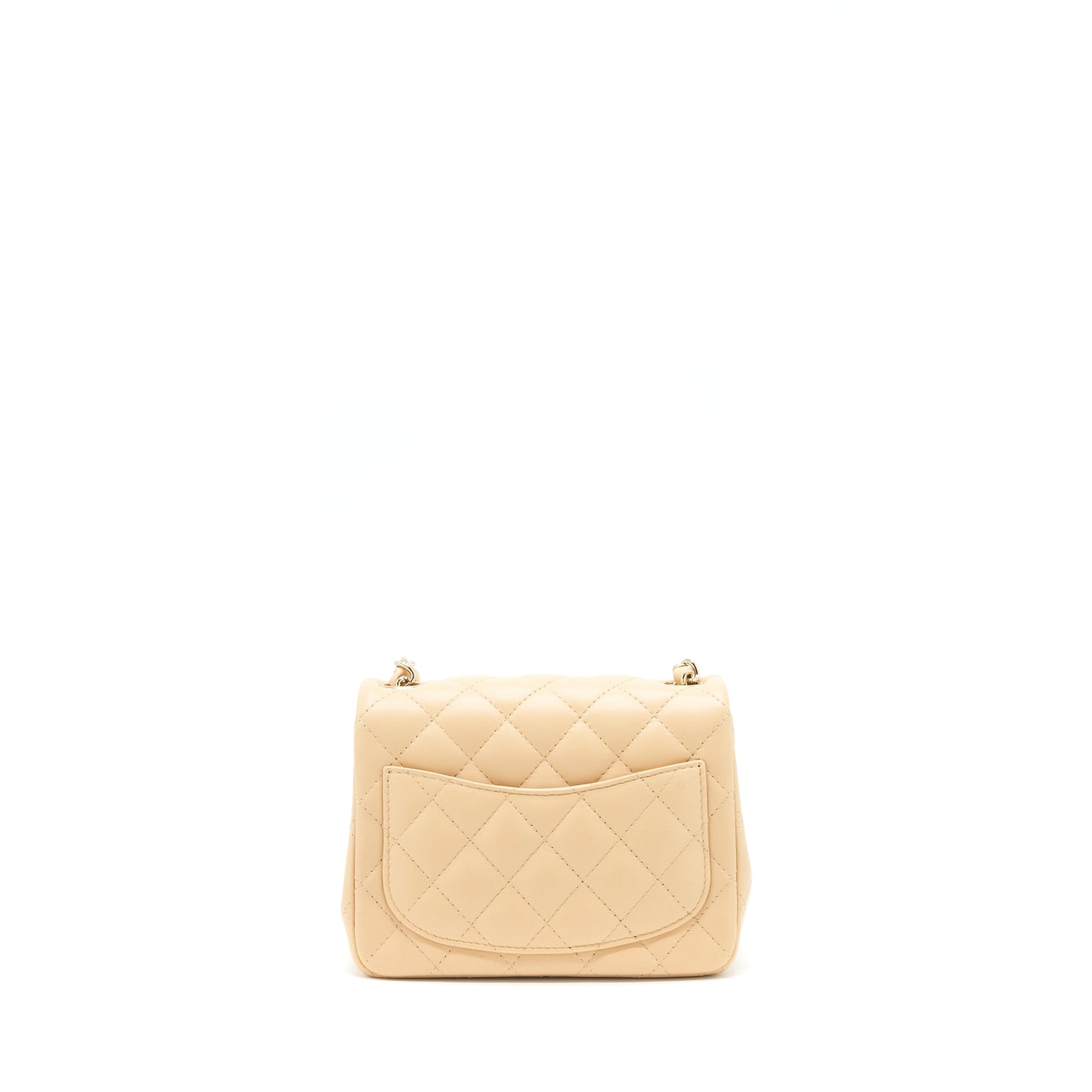 Chanel 22C Mini square flap Bag Lambskin beige LGHW(Microchip)
