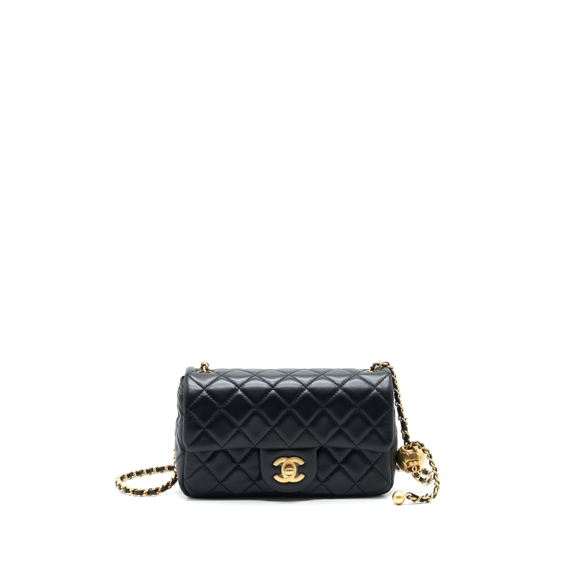 Chanel 22C pearl Crush Mini rectangular Flap Bag Lambskin Black GHW (microchip)