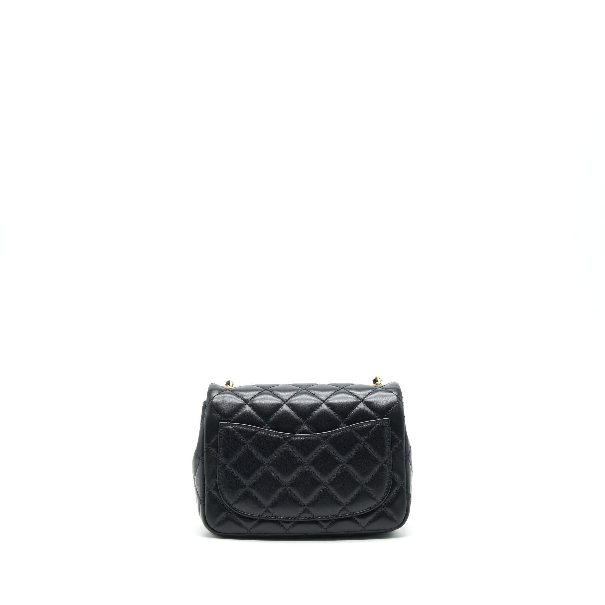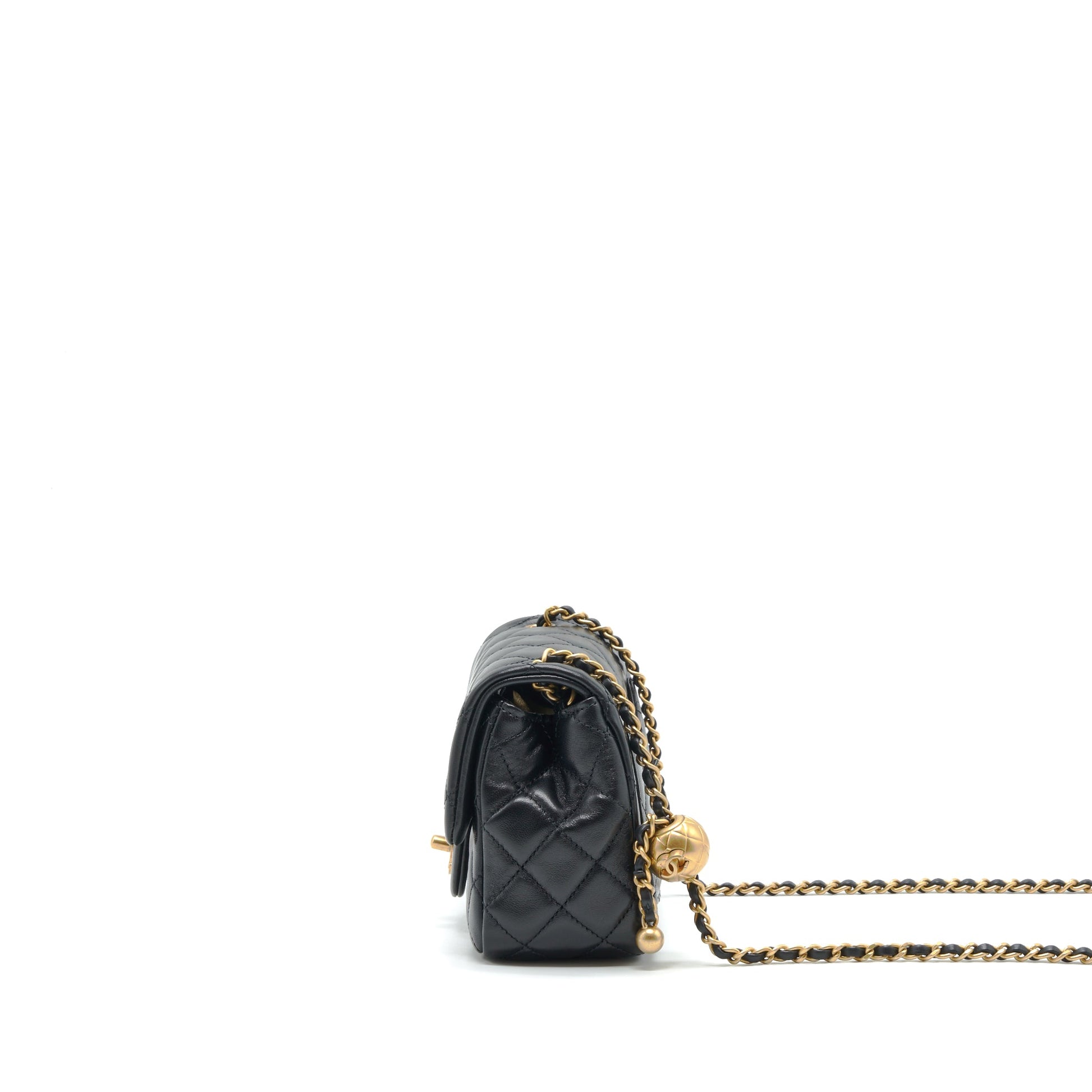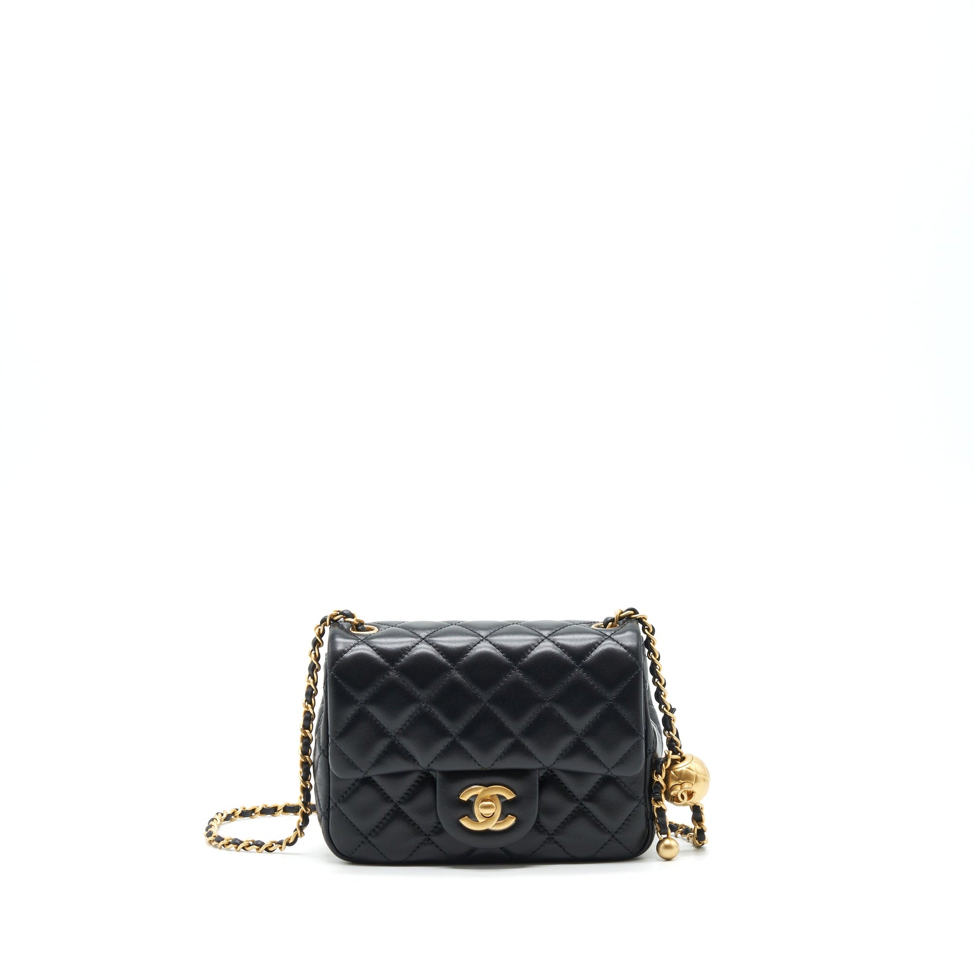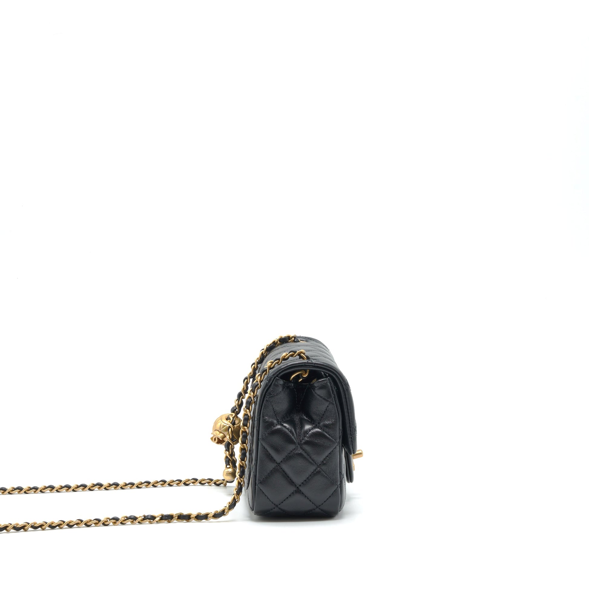 Chanel 22C Pearl Crush Mini Square Flap Bag Lambskin Black GHW (Microchip)