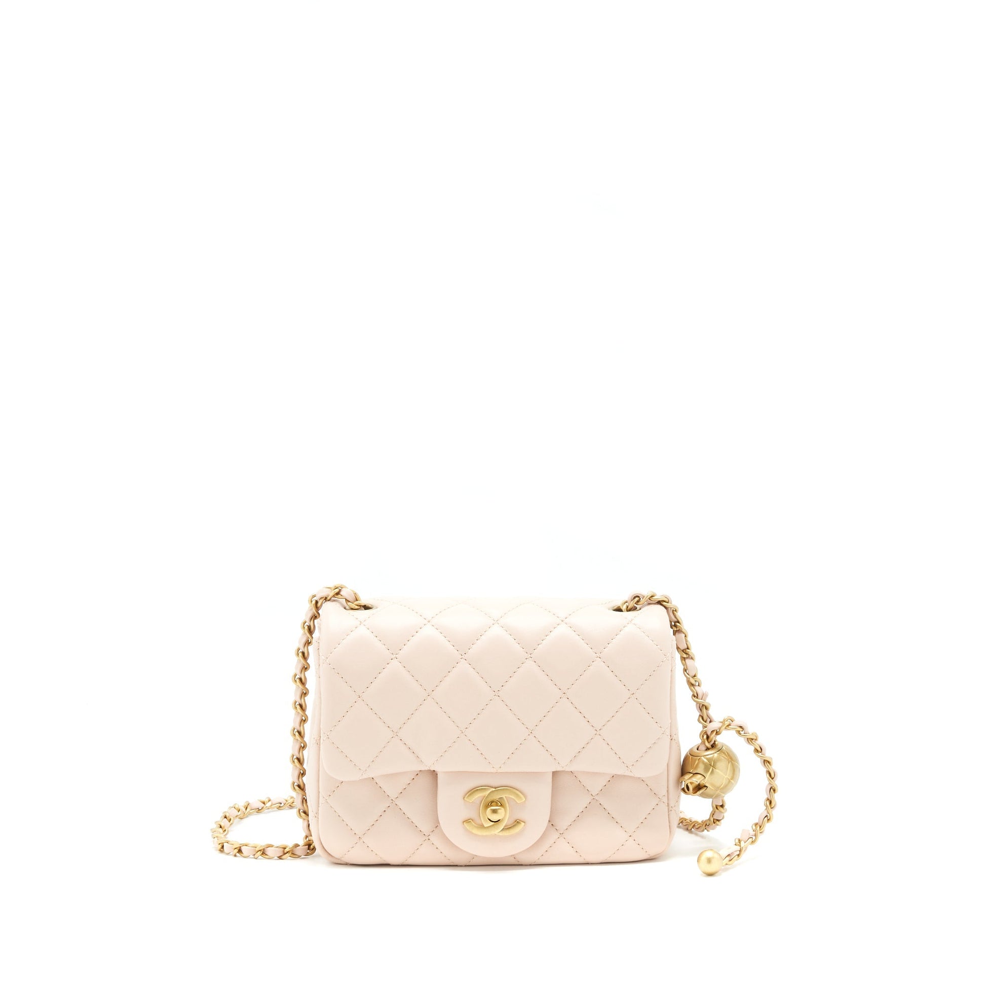 Chanel 22C Pearl Crush Mini Square Flap Bag Lambskin Light Pink GHW