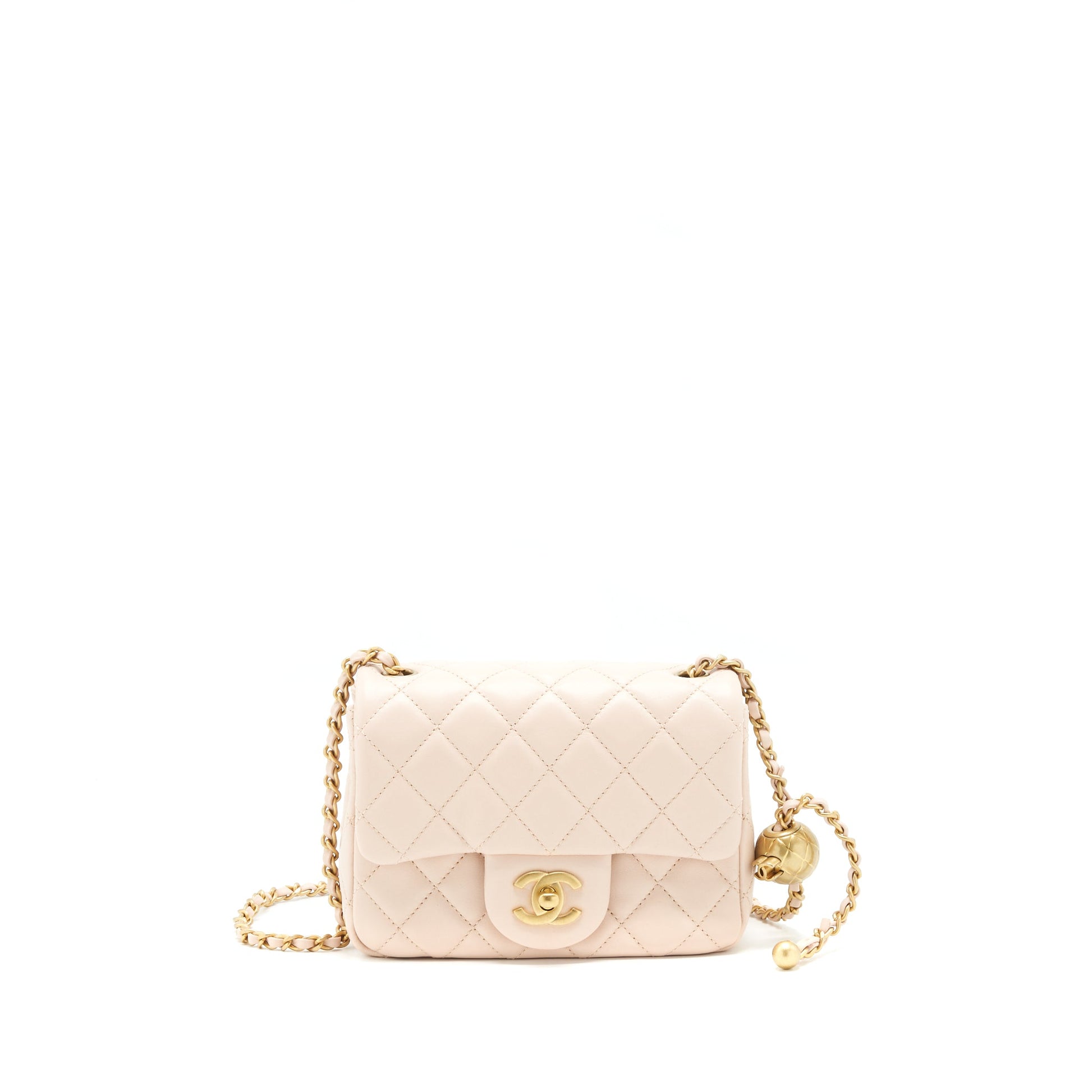 Chanel 22C Pearl Crush Mini Square Flap bag Lambskin Light Pink GHW