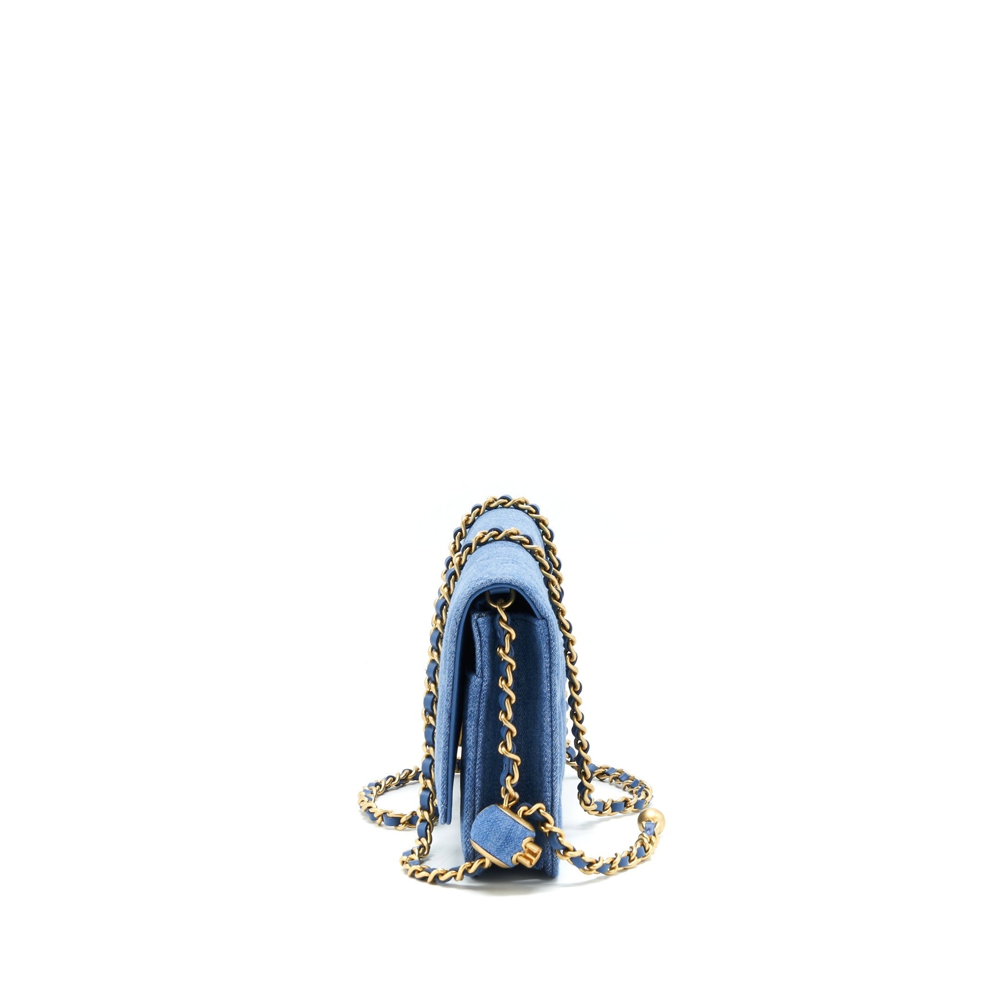 Chanel 22C Pearl Crush Wallet On Chain Denim GHW