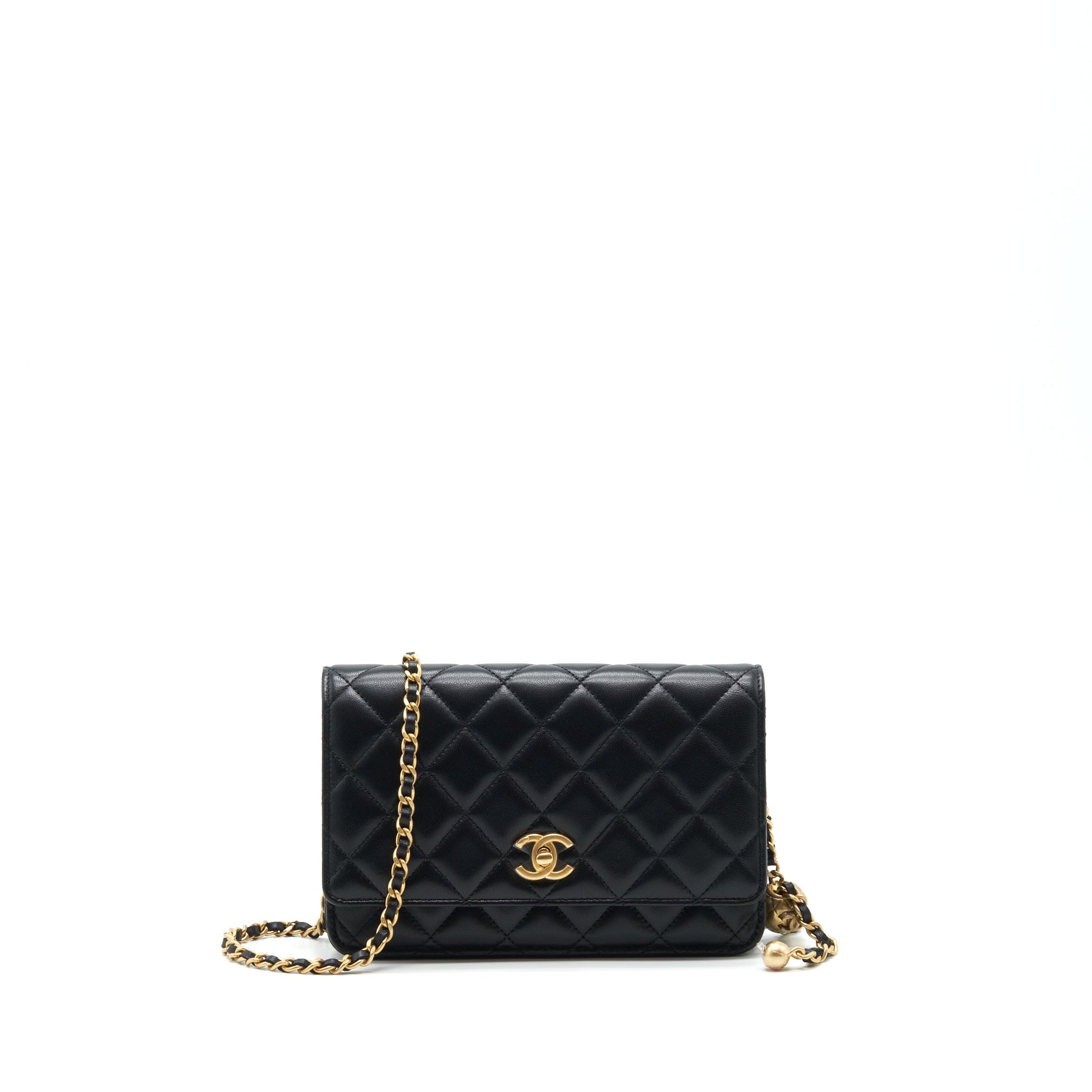 Chanel 22C Pearl Crush Wallet On Chain Lambskin Black GHW (Microchip)