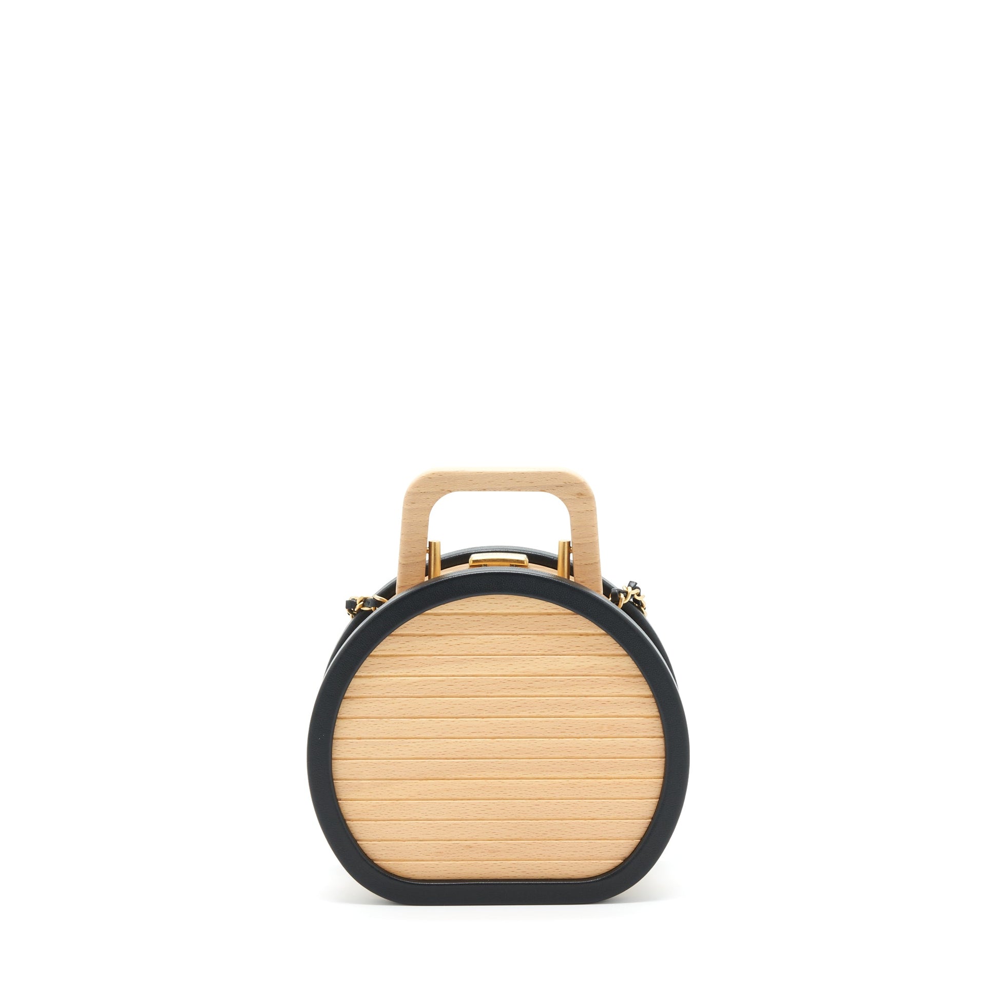Chanel 22C small vanity case beech wood, calfskin beige / black with GHW
