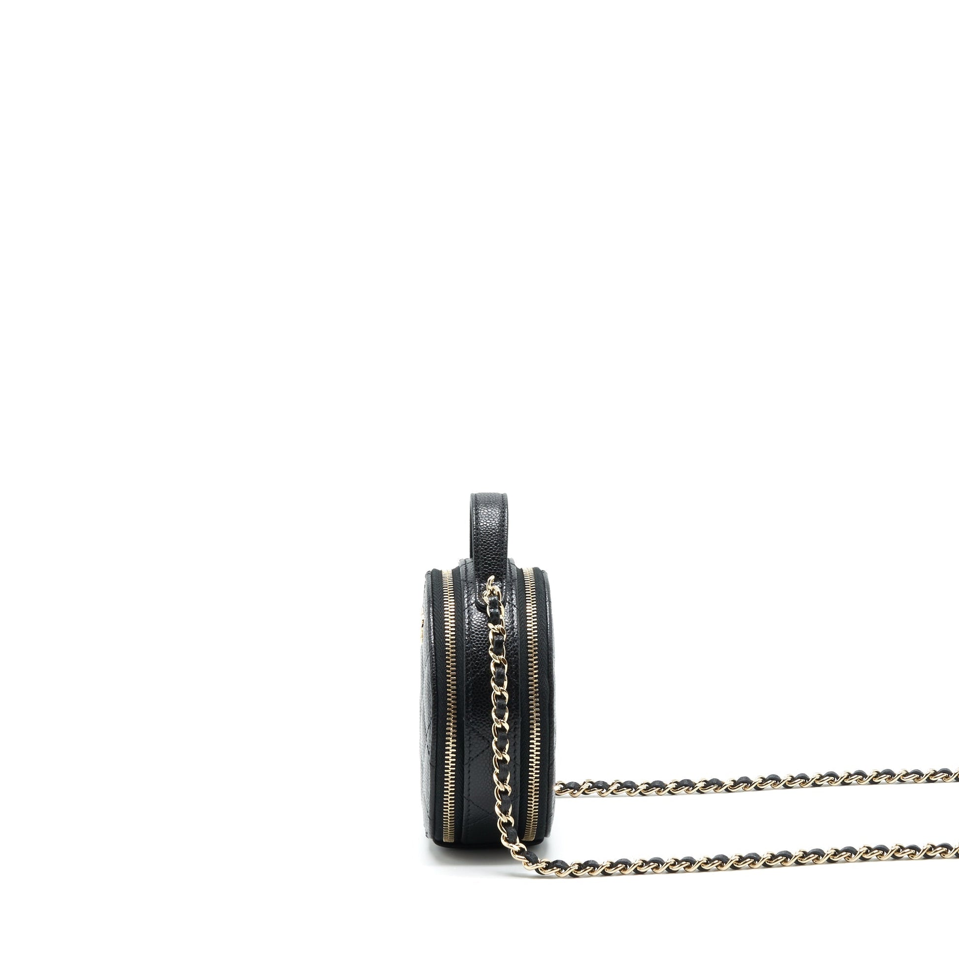 Chanel 22C Top Handle Round Vanity Black With Chain Caviar LGHW