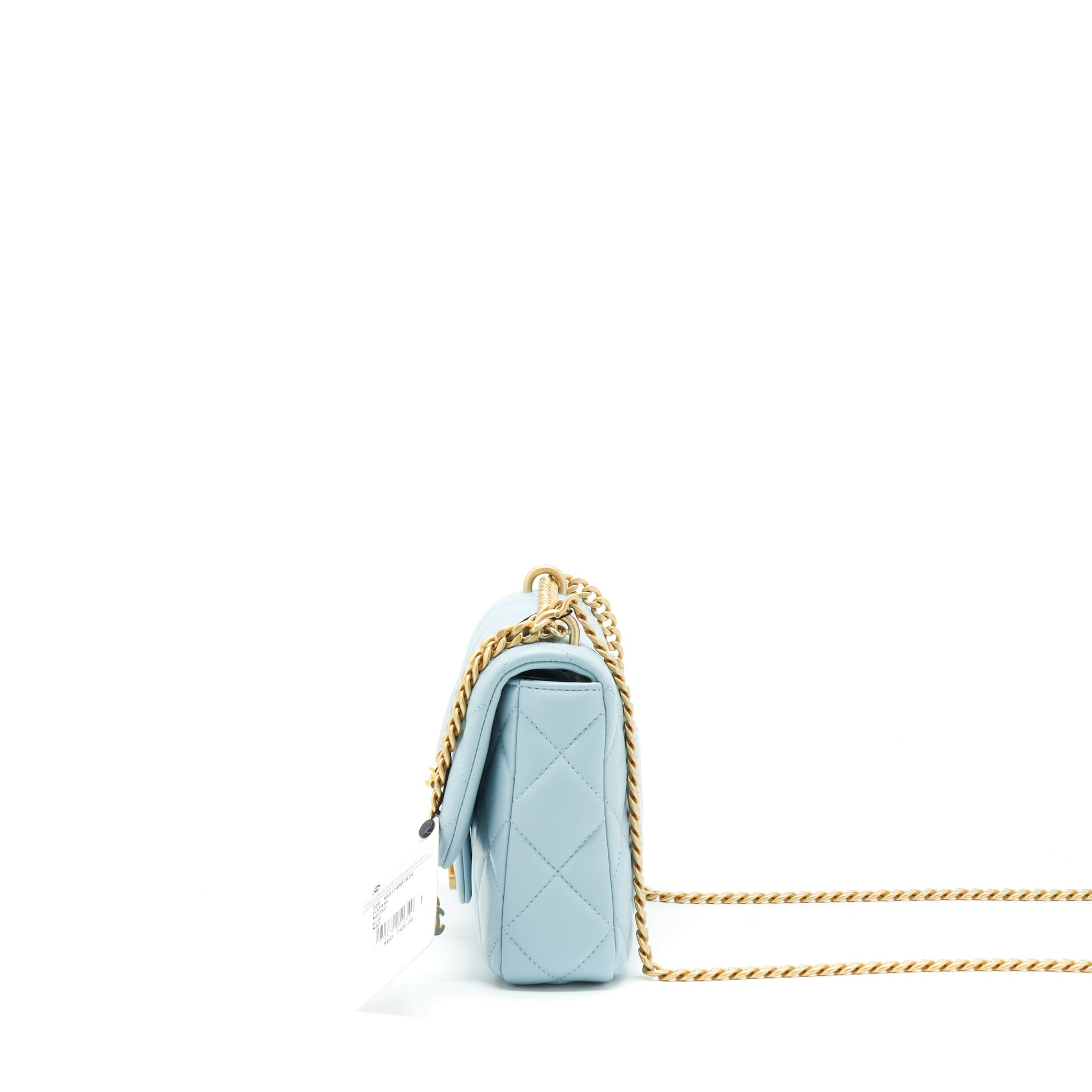 Chanel 22P Enemal Small Flap Bag Lambskin Light Blue Gold/Blue Hardware
