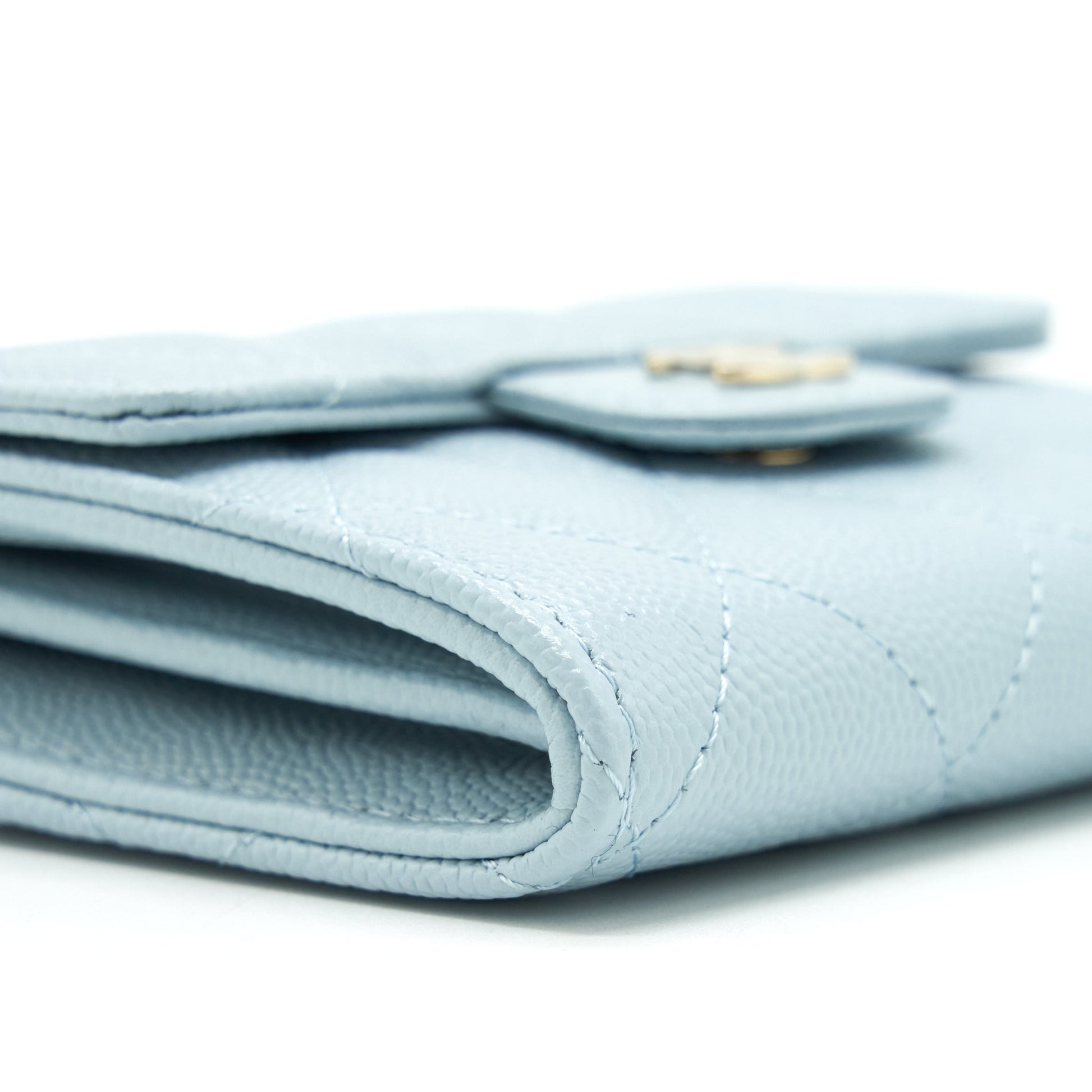 Chanel 22P Flap Double Card Holder Caviar Light Blue LGHW