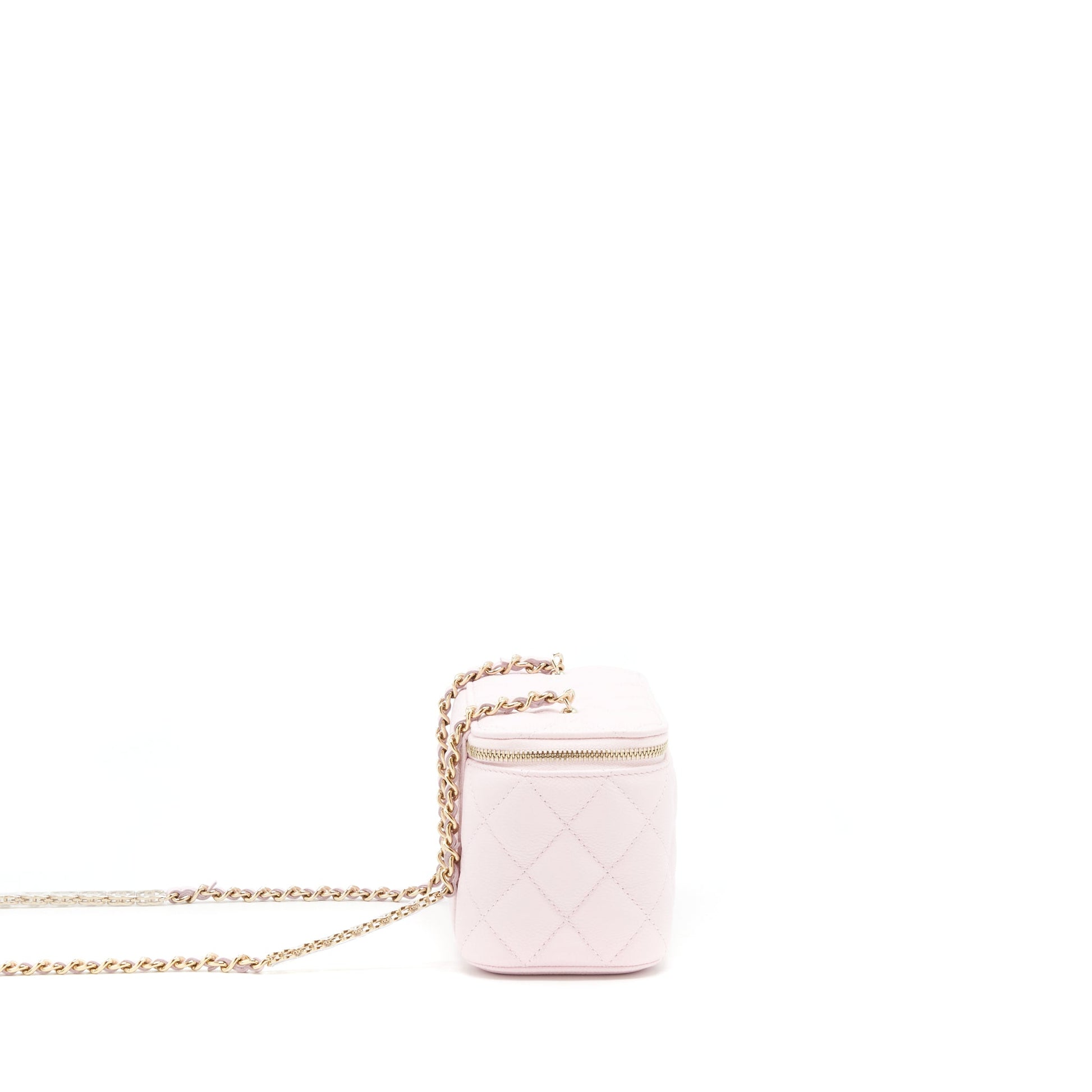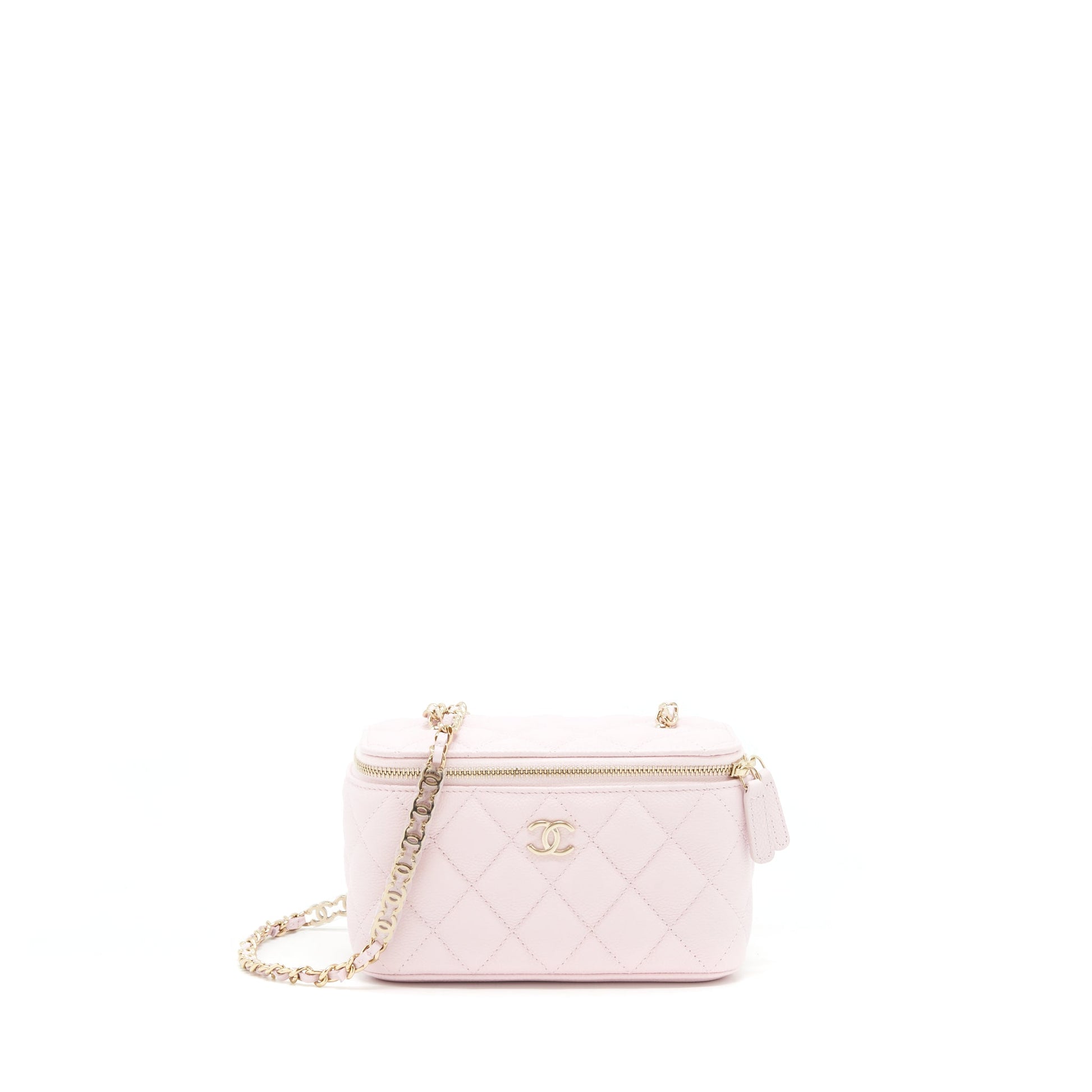 Chanel 22P Long Vanity Case With Logo Chain Caviar Light Pink LGHW