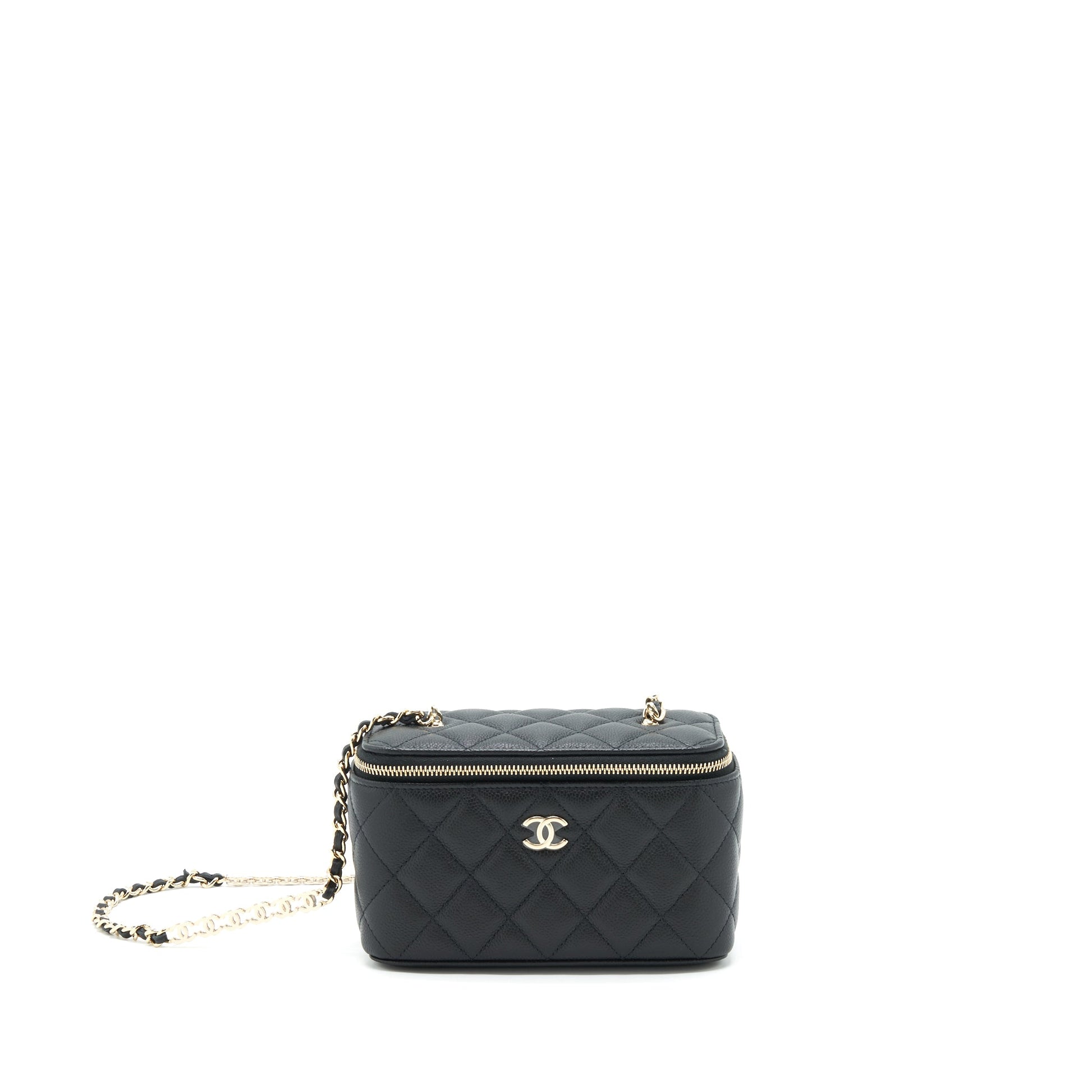 Chanel 22P Long Vanity With Logo Chain Caviar Black LGHW