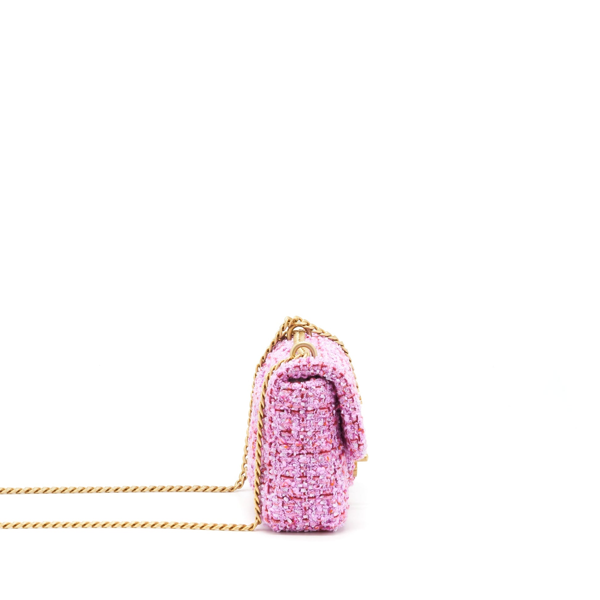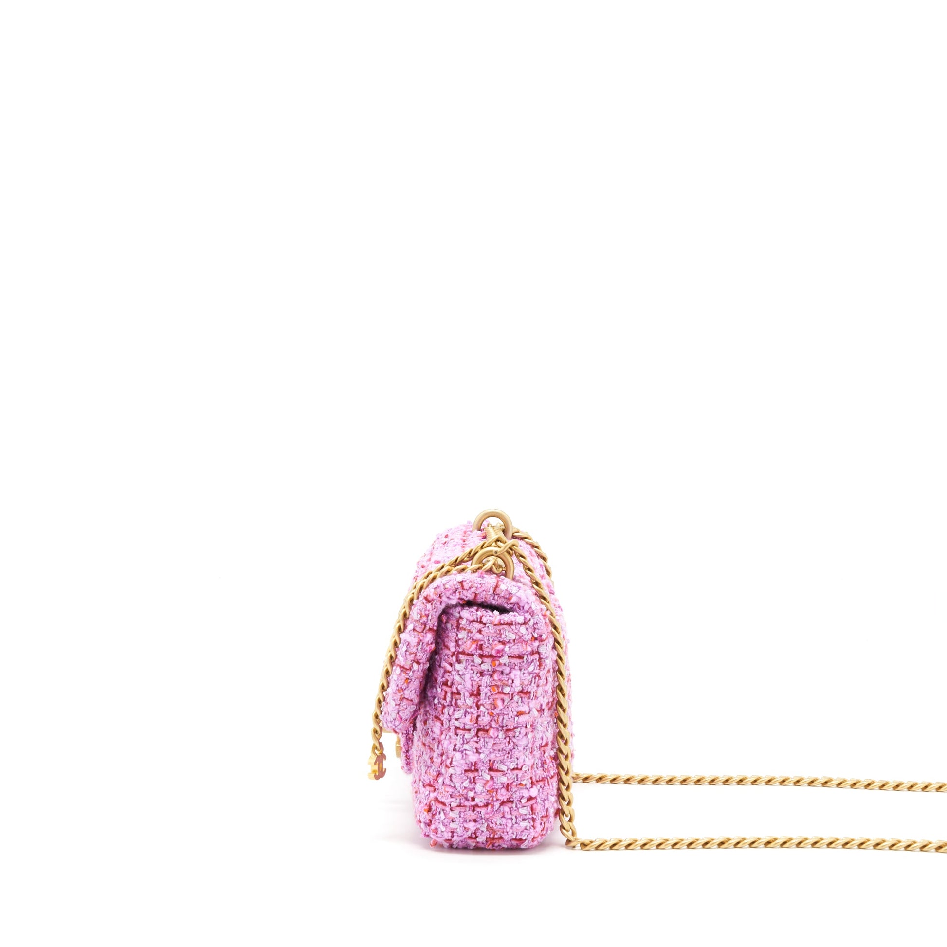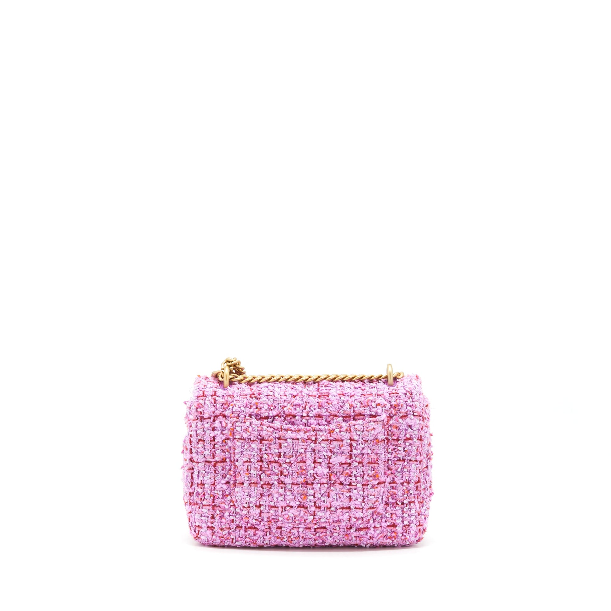Chanel 22P Mini Square Flap Bag Tweed Pink Gold/Pink Hardware
