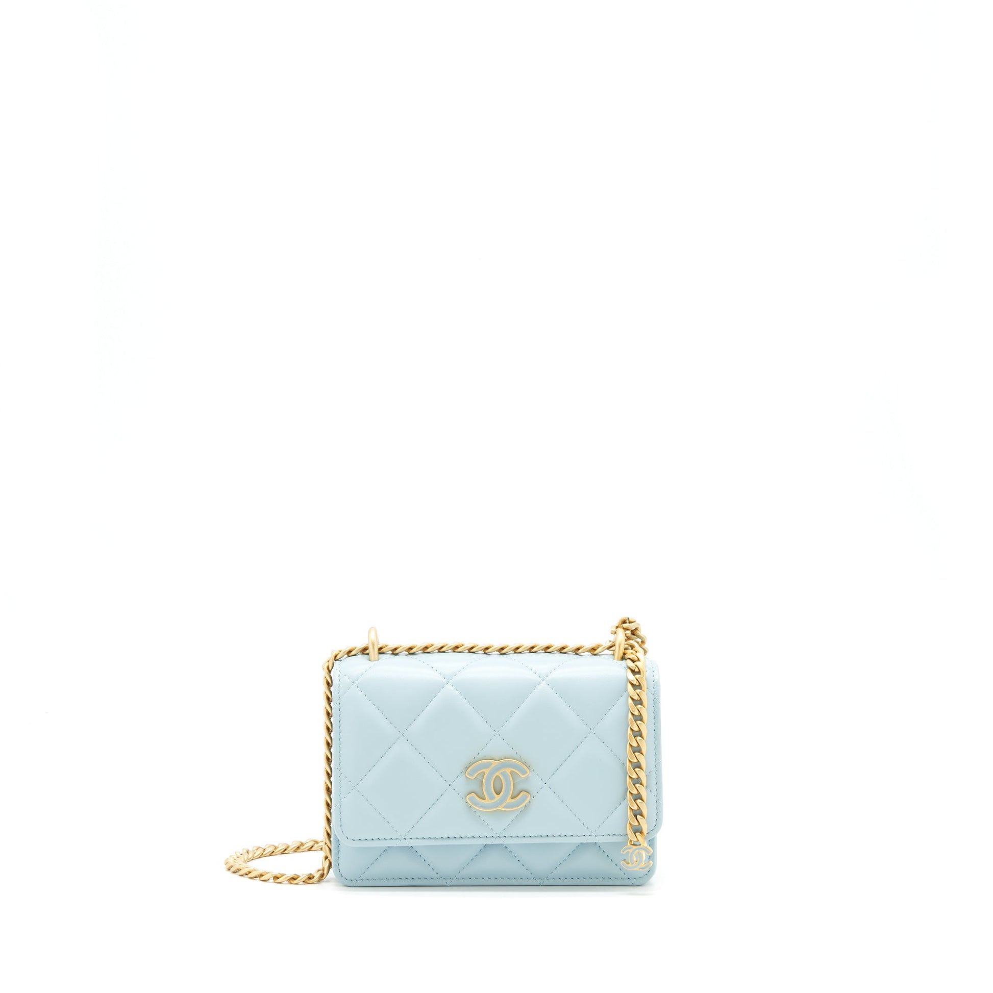 Chanel 22P Purse Vanity with Chain light blue GHW