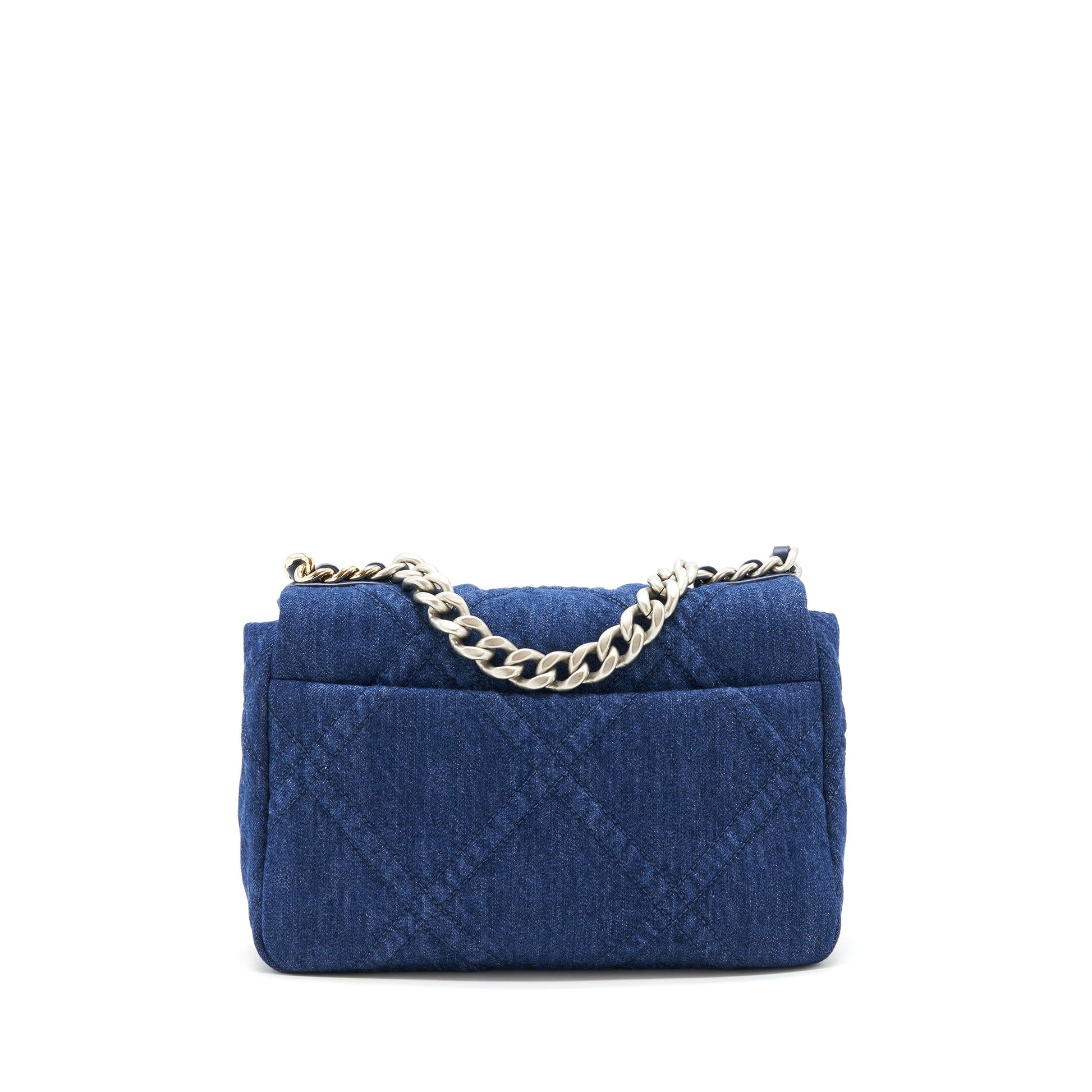 Chanel 22P Small 19 Bag Denim Blue With Gold And Silver Hardware