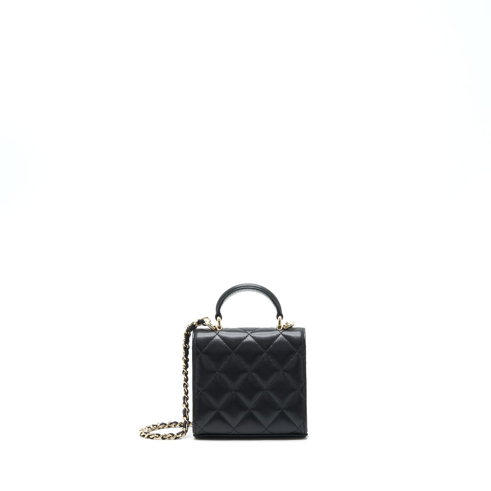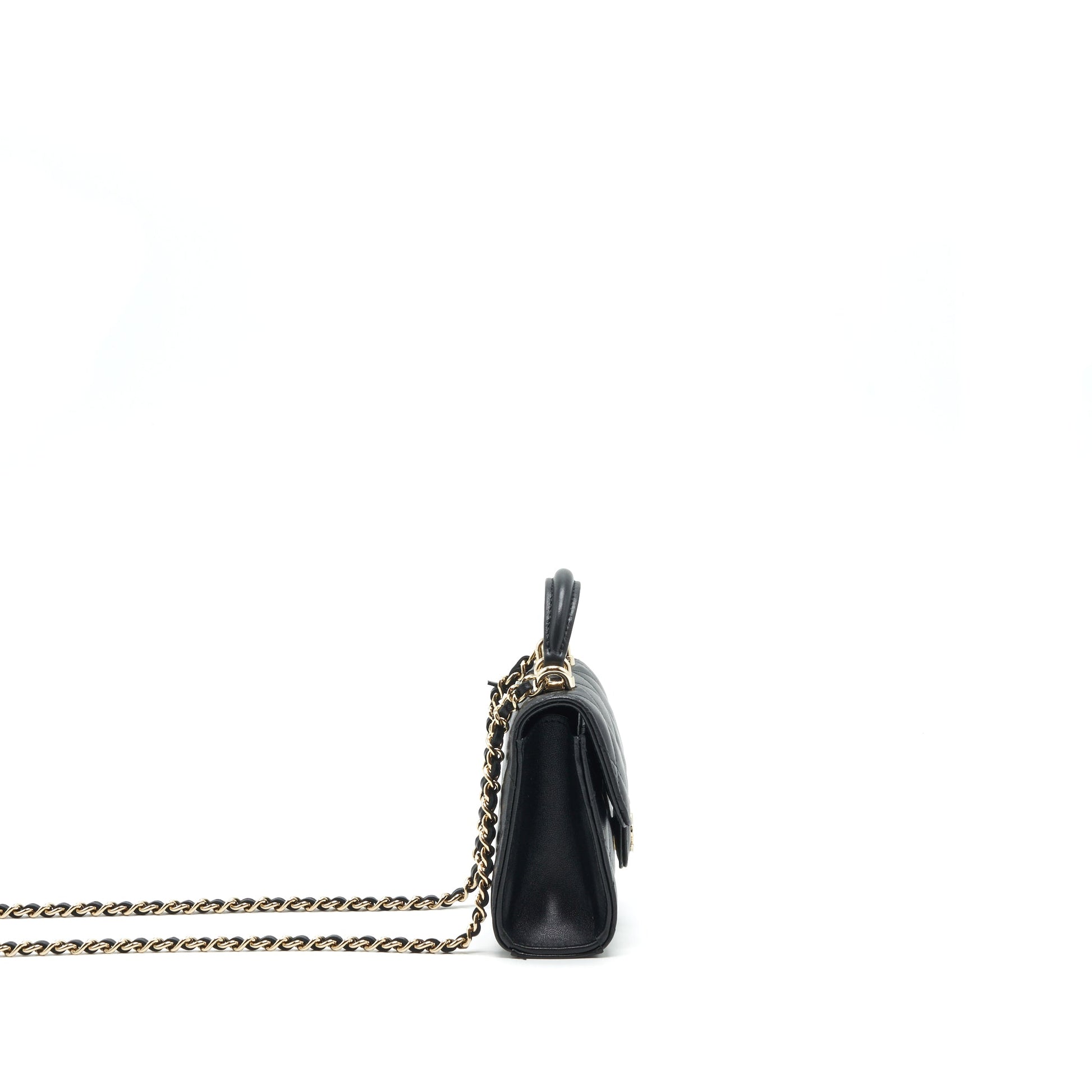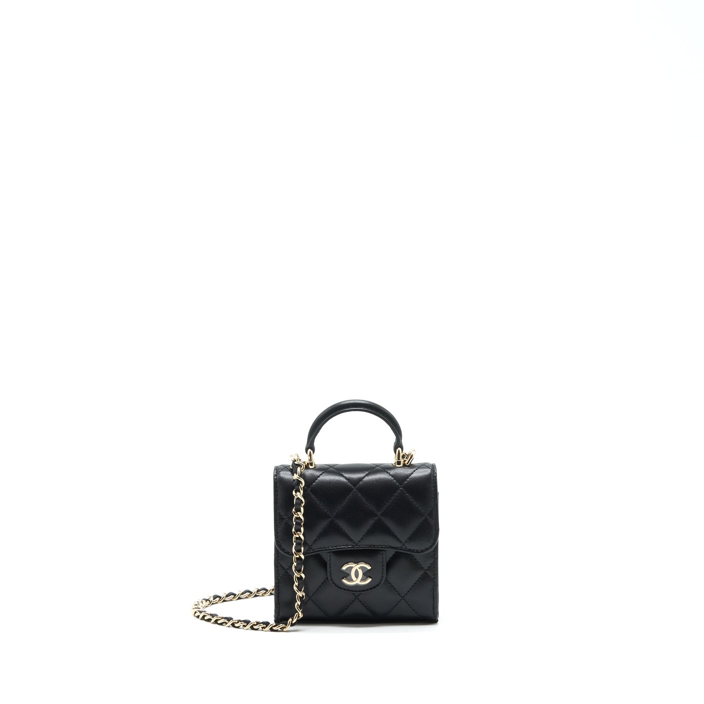 Chanel 22P Top Handle Mini Flap Bag With Chain Lambskin Black LGHW