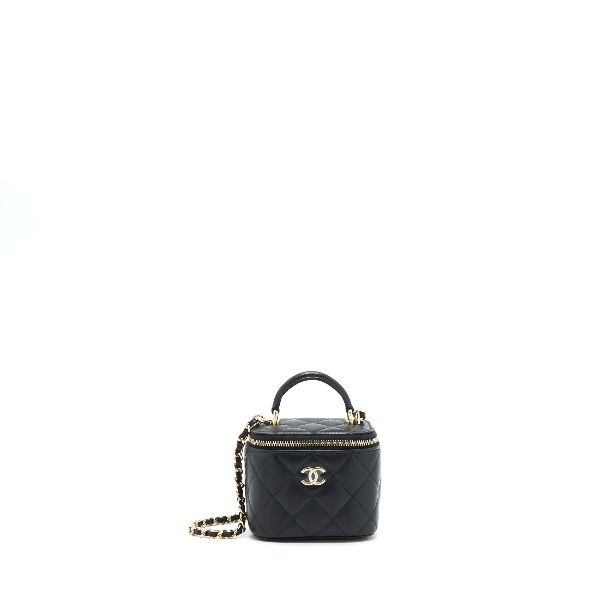 Chanel 22P Top Handle Mini Vanity With Chain Lambskin Black LGHW