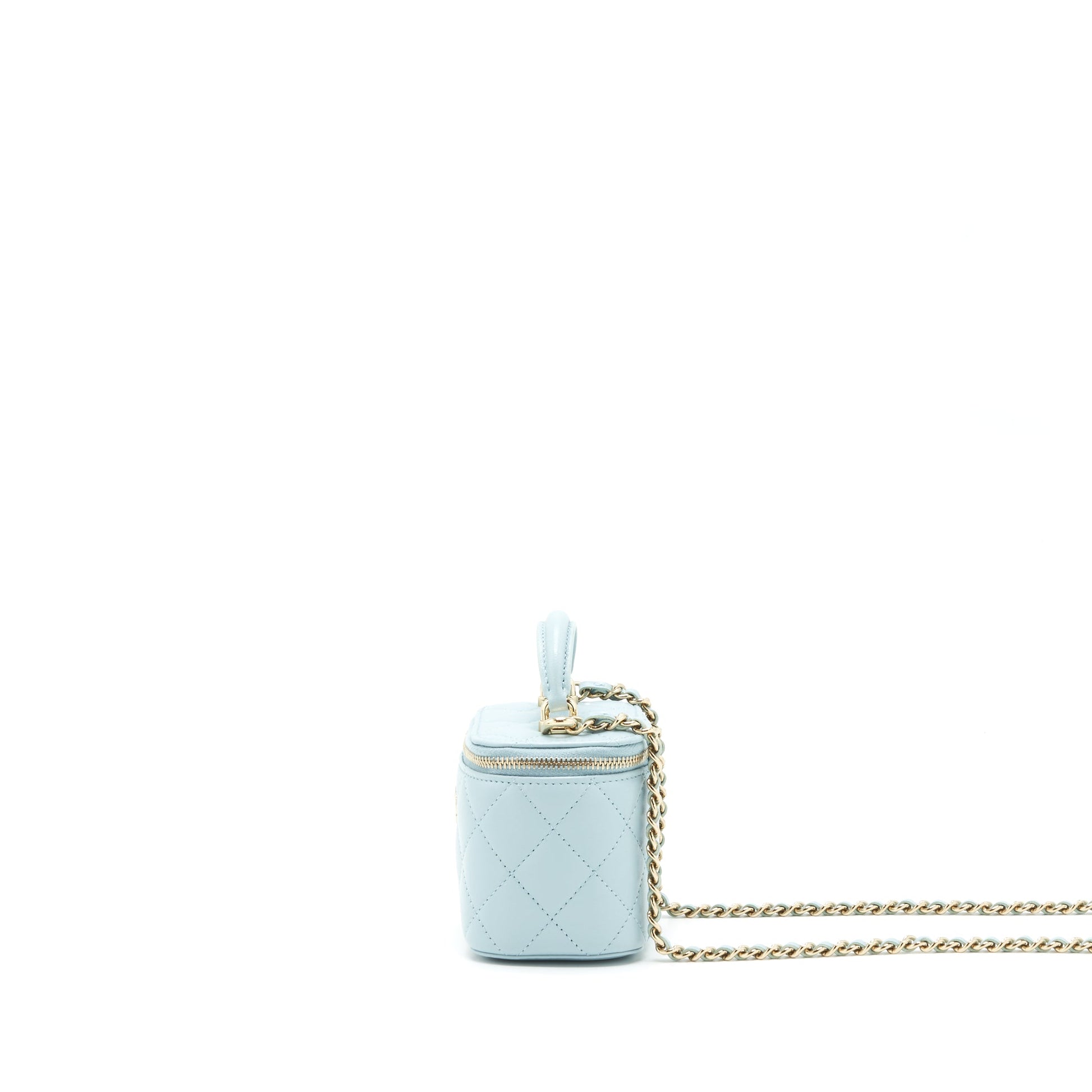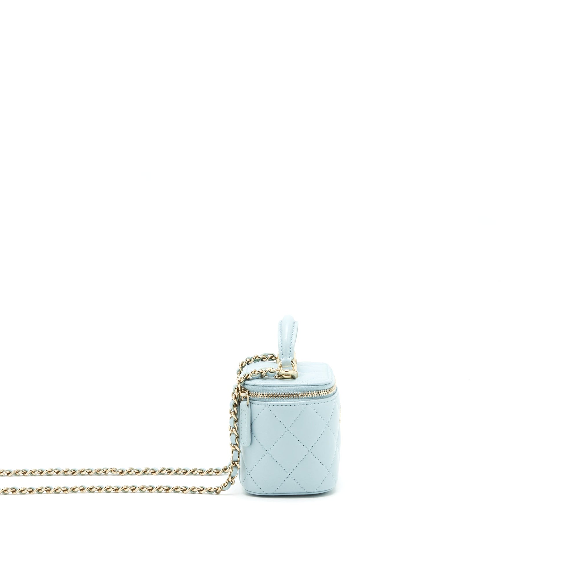 Chanel 22P Top Handle Mini Vanity With Chain Lambskin NG752 Light Blue LGHW