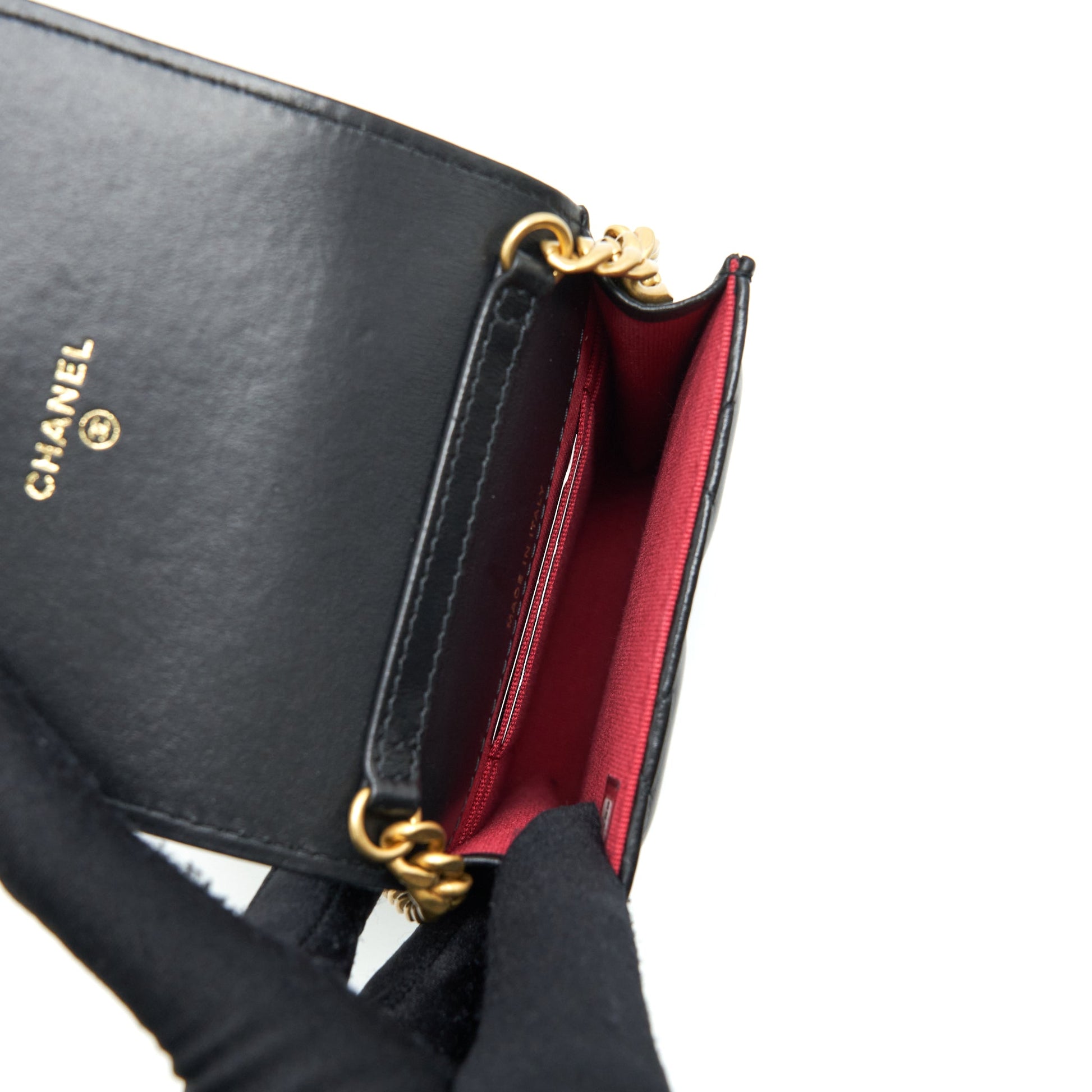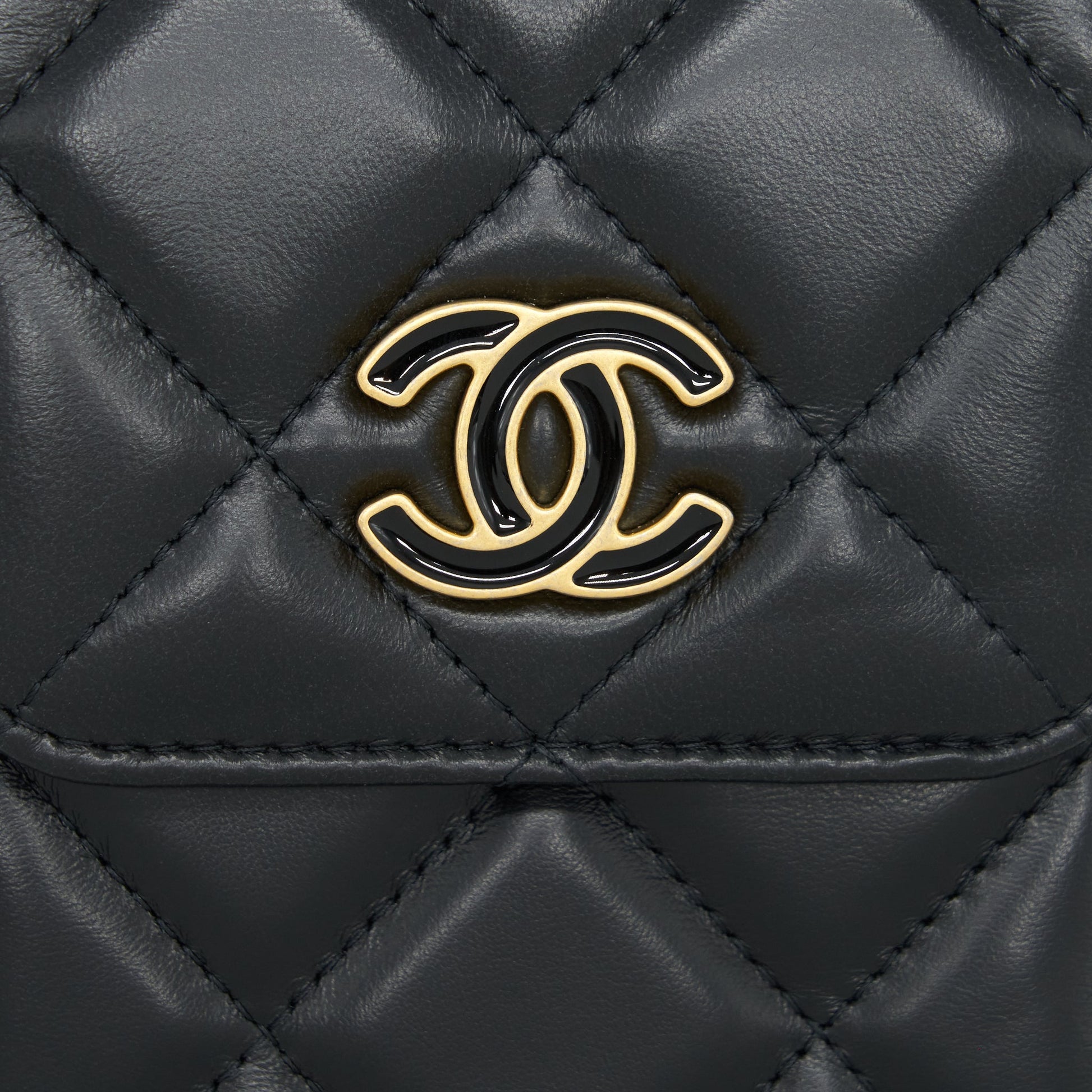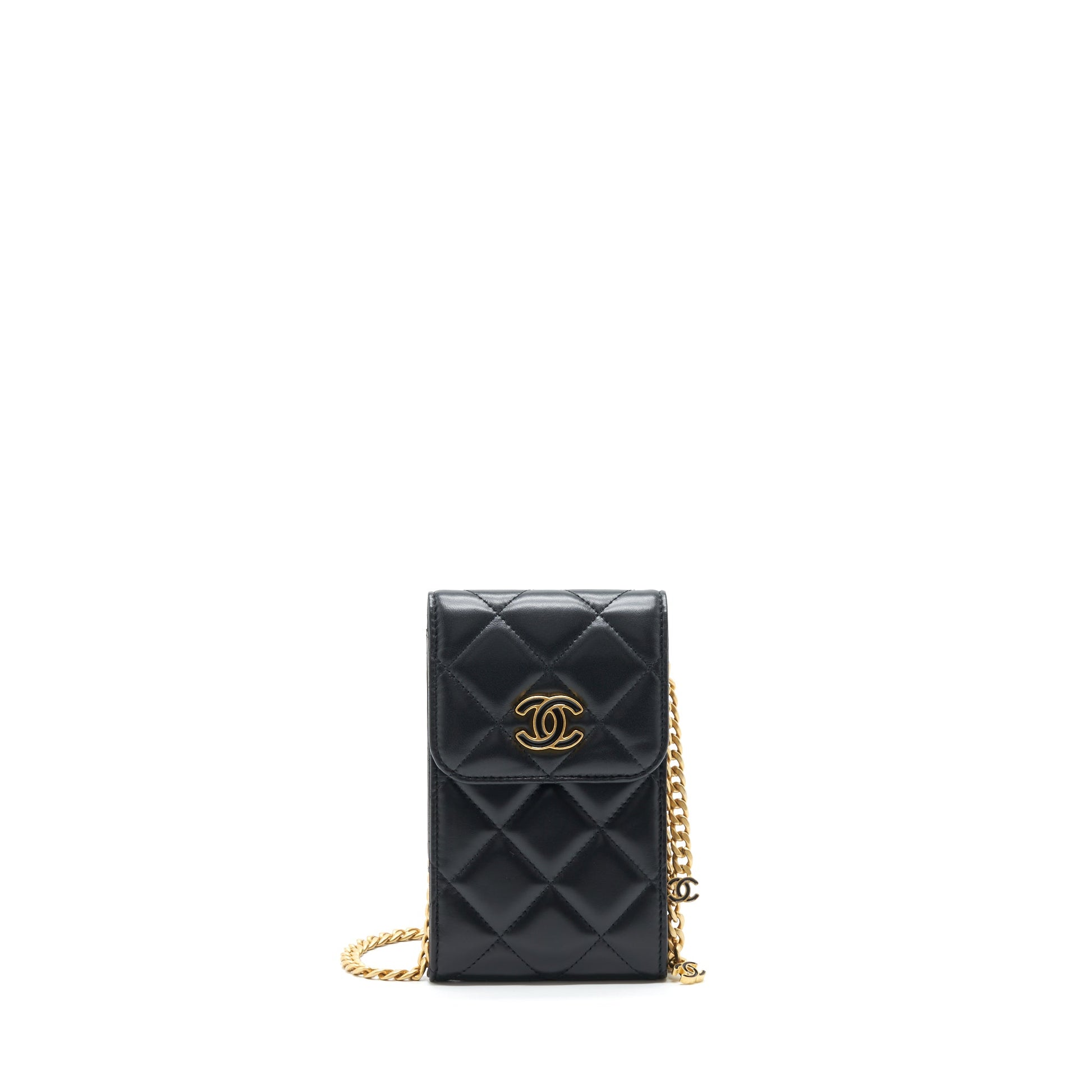 Chanel 22P Vertical Mini Flap Phone Case Lambskin Black With Enamel And Gold Hardware