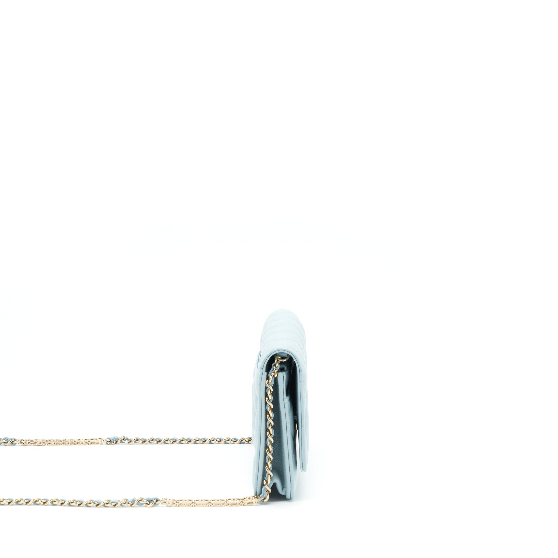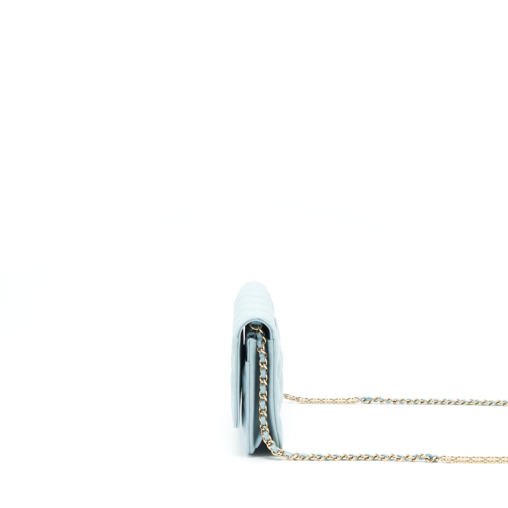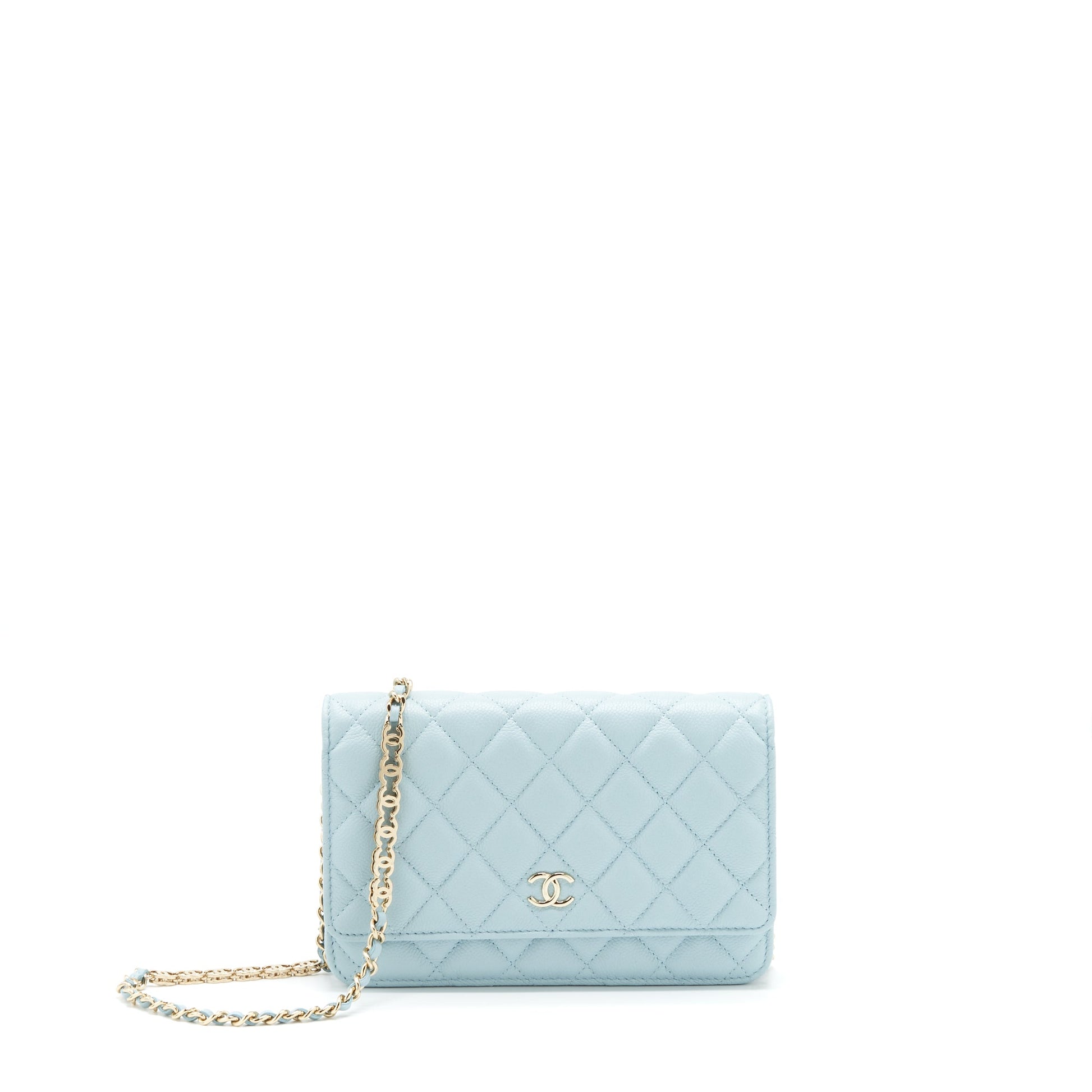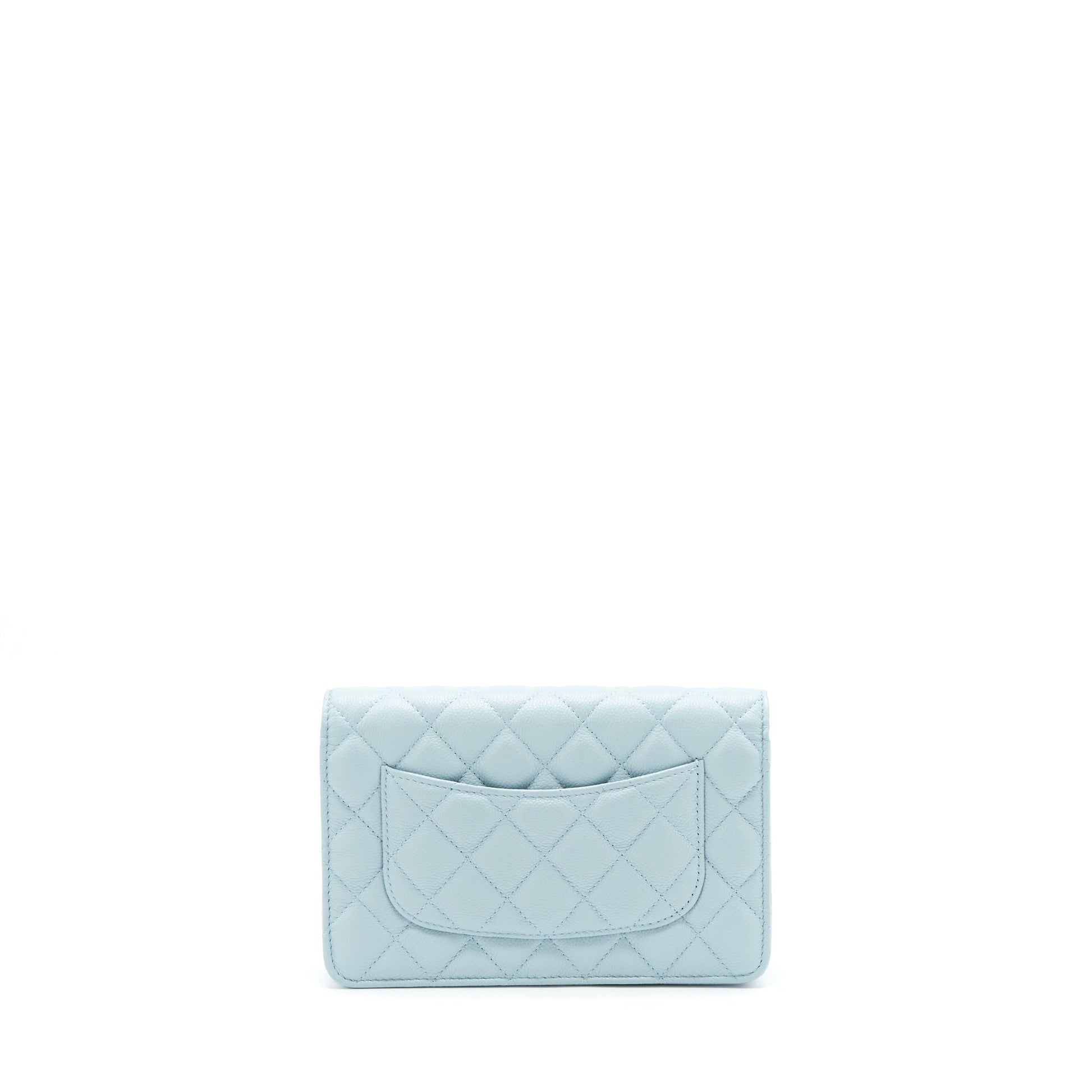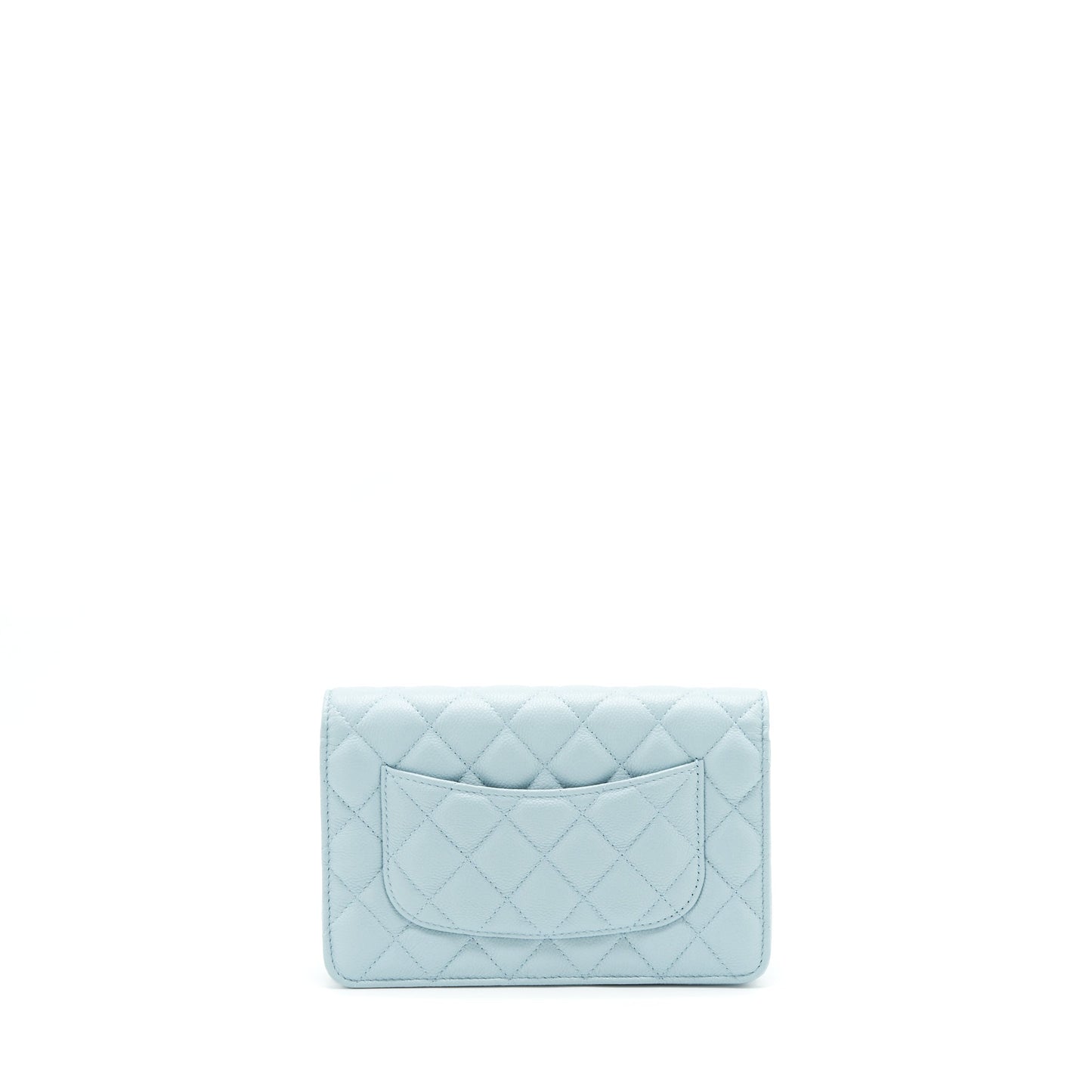 Chanel 22P Wallet On Chain With CC Logo Chain Caviar Light Blue LGHW