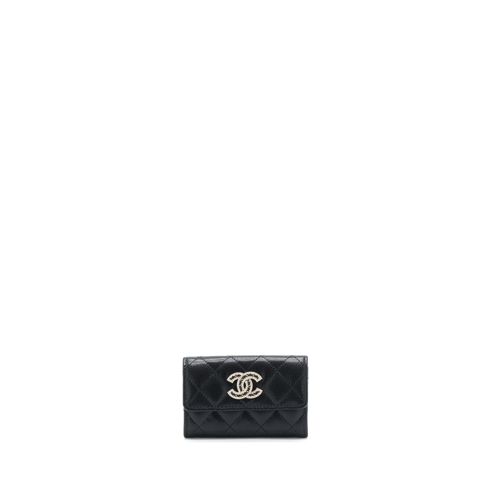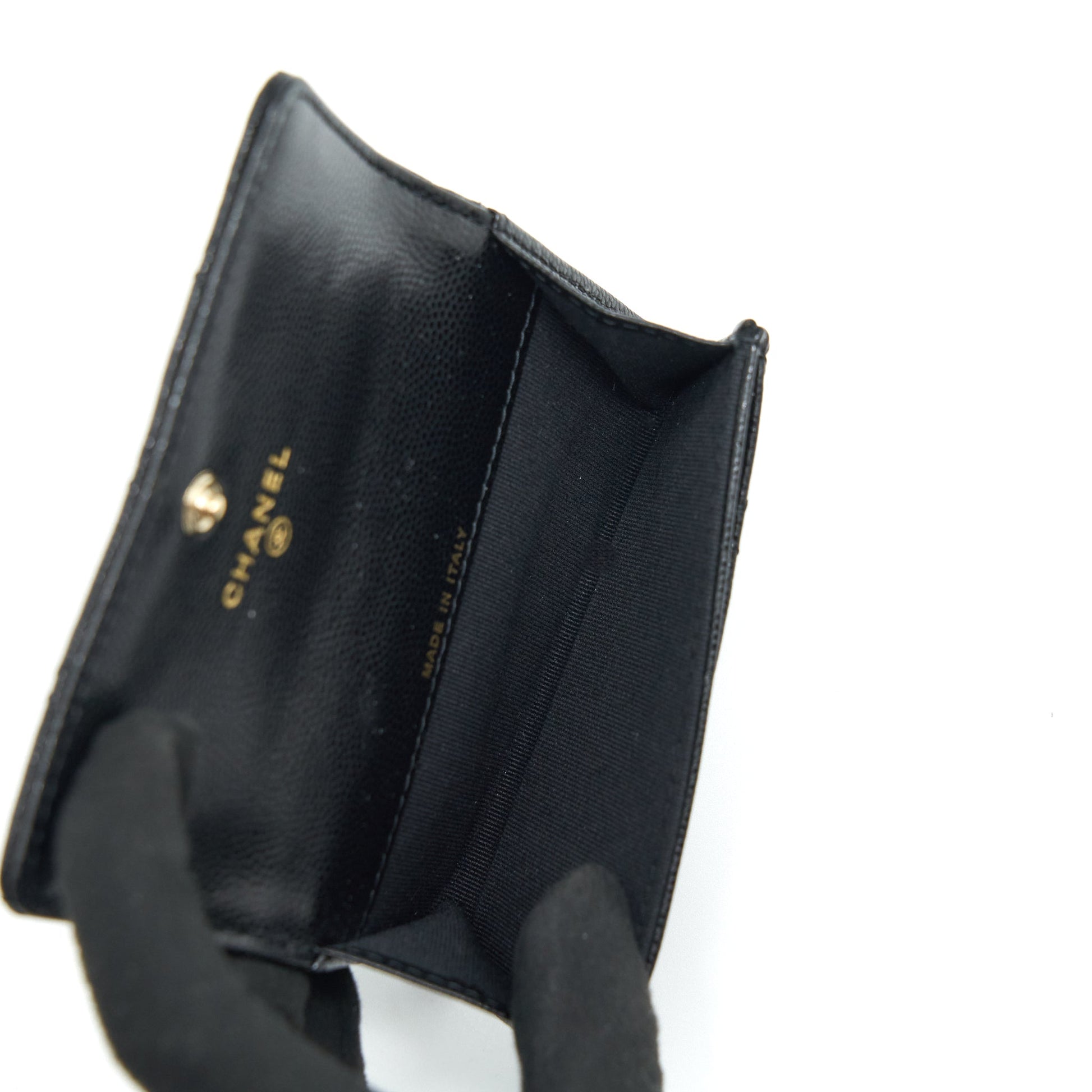 Chanel 22S Detailed Logo Mini Flap Card Holder Caviar Black LGHW