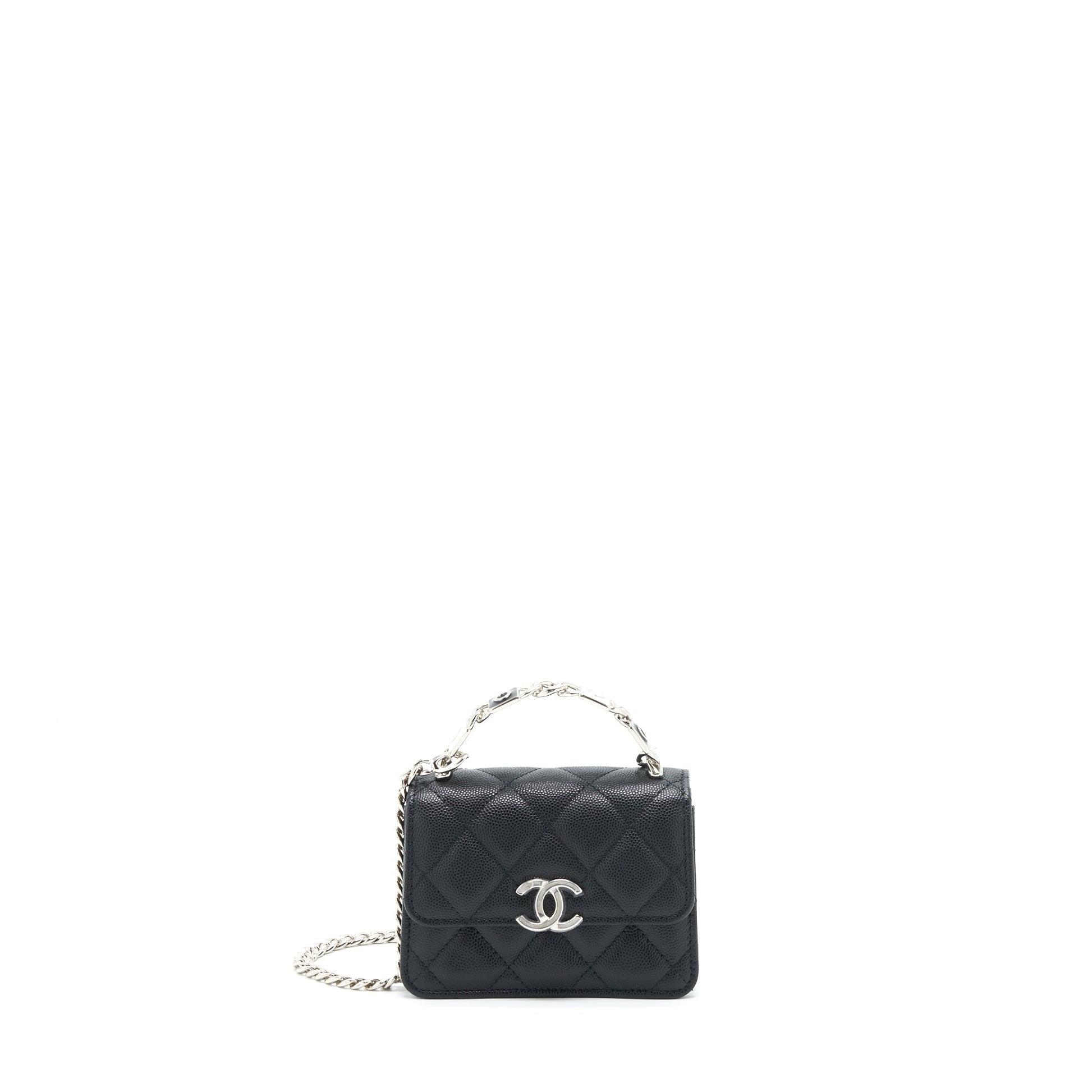 Chanel 22S Giant Chain Top Handle Mini Flap Bag Caviar Black SHW
